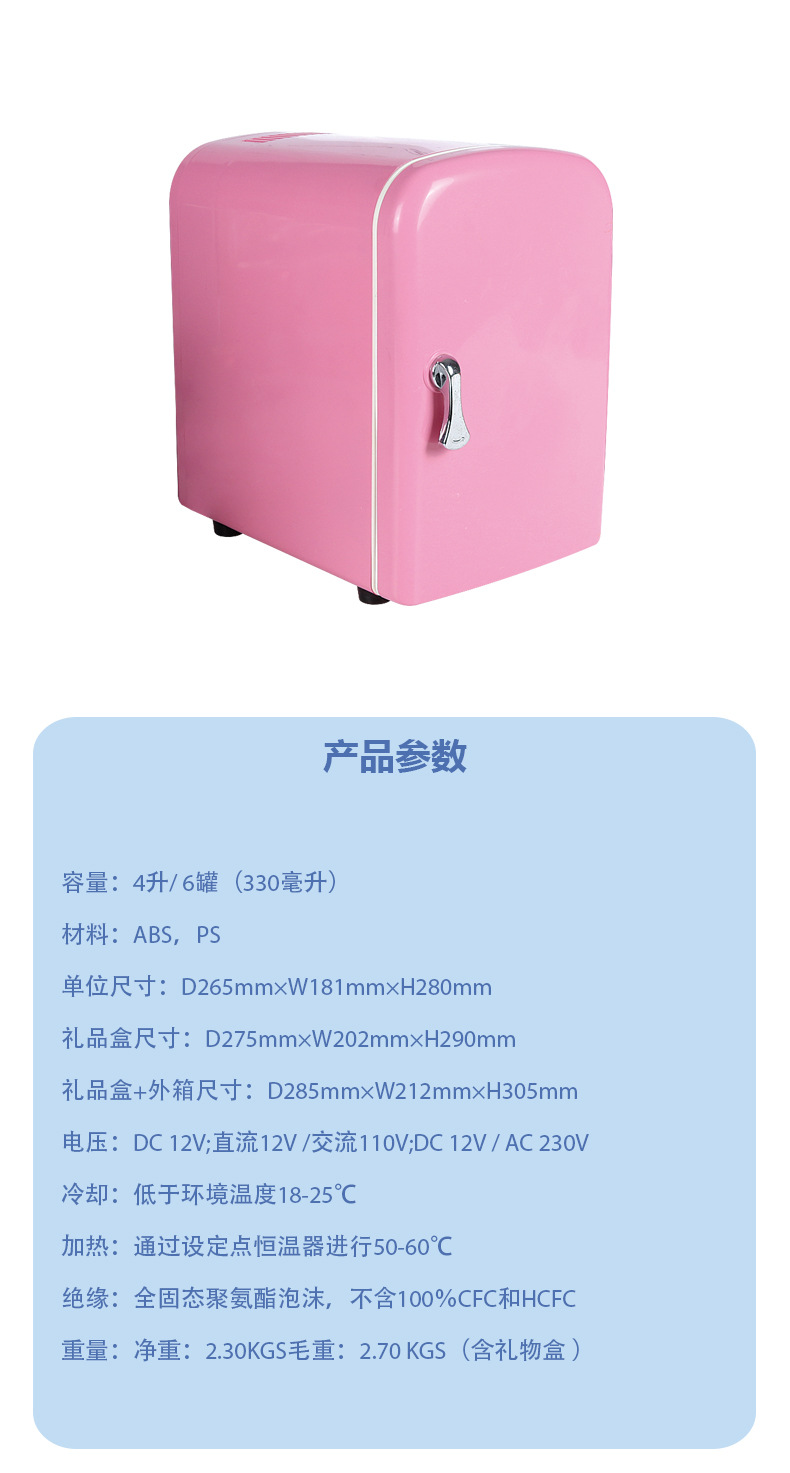 Chejia 이중 목적 소형 냉온장고/화장품 냉장고 4L 미니 ABS 반도체 냉장고 [지원