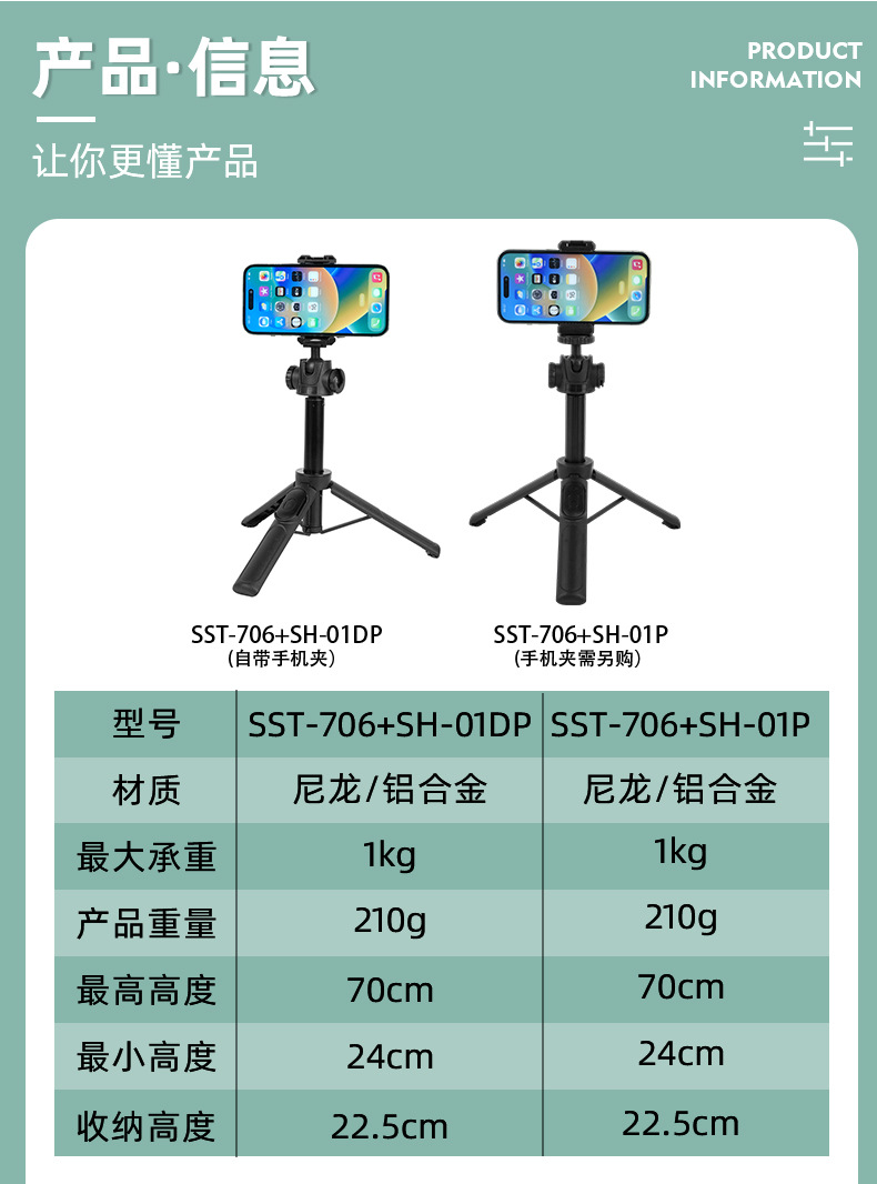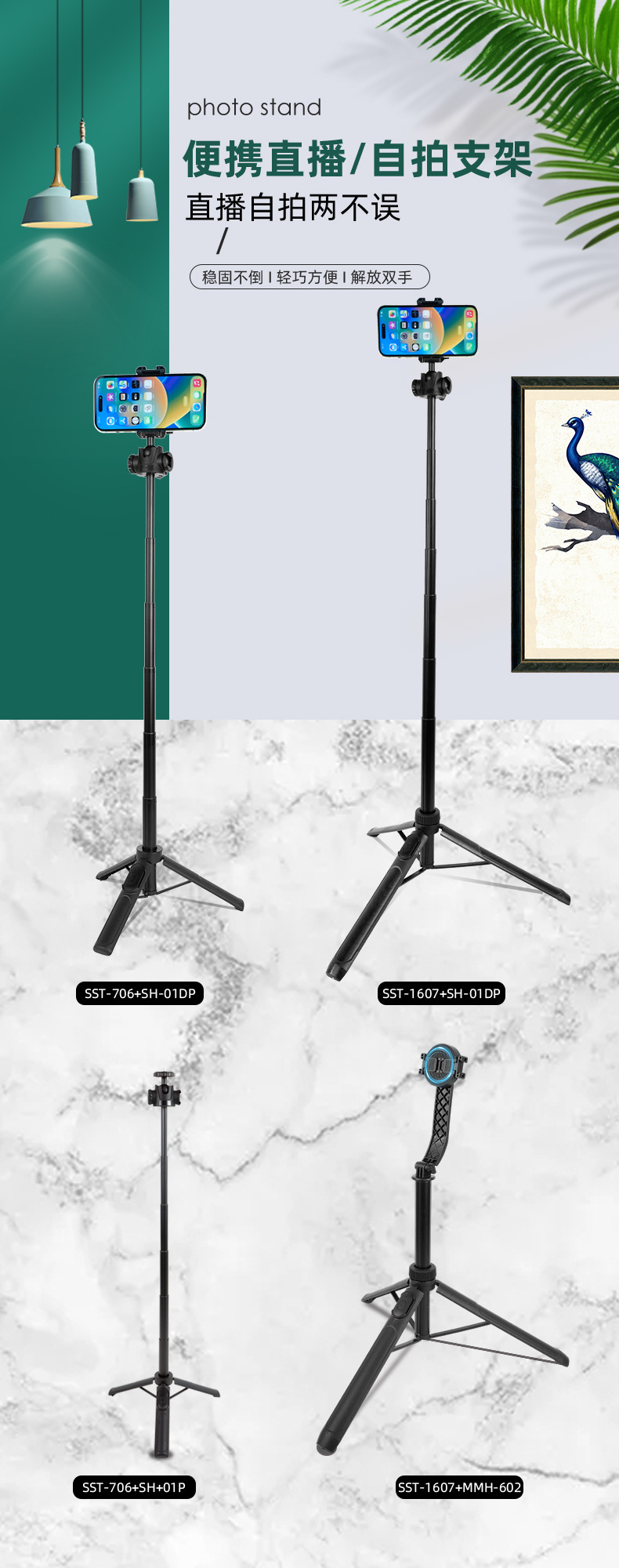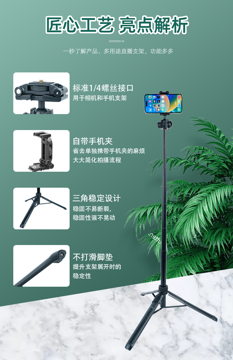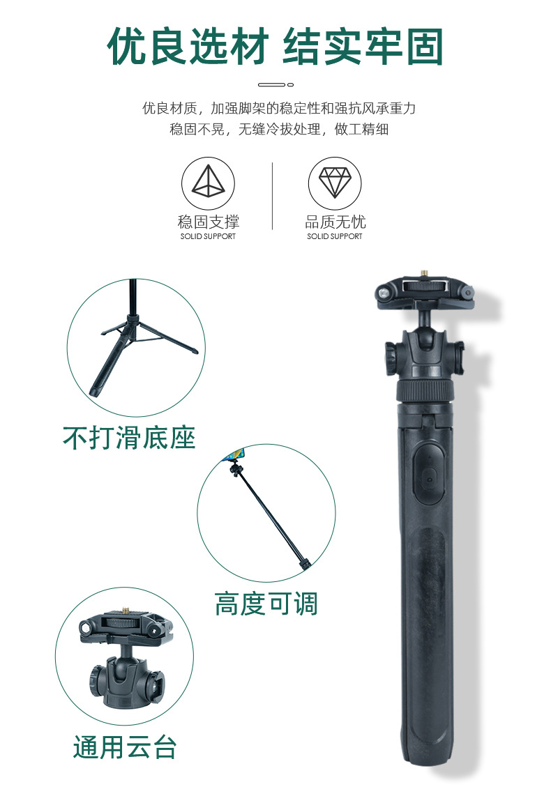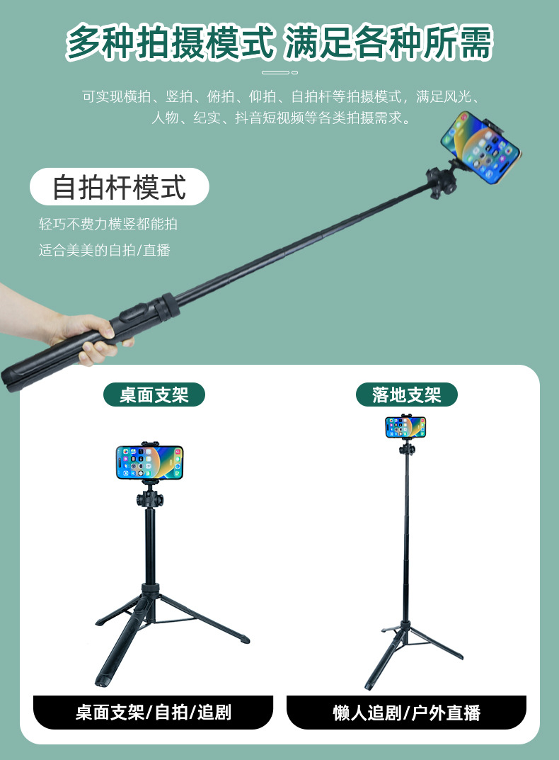 Dijie 셀카봉 삼각대 일체형 휴대폰 카메라 촬영 및 사진 라이브 방송 특수 휴대용 삼각대 휴대용