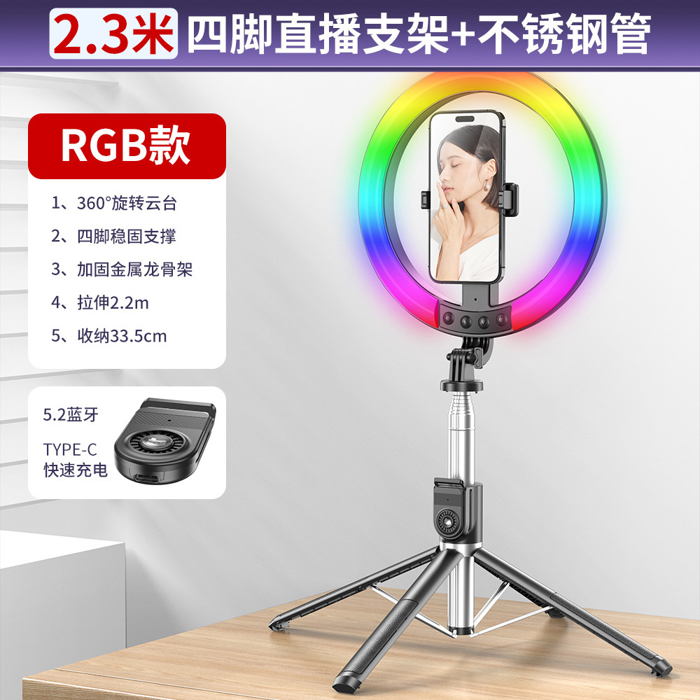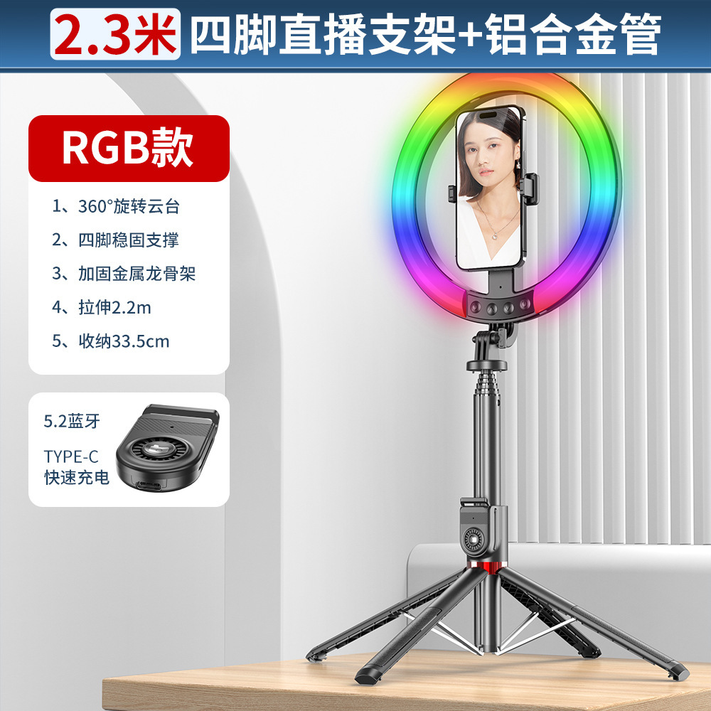 P220QRGB 대형 원형 램프 새로운 레벨 셀카봉 블루투스 필 라이트 고성능 안정기 블루투스 셀카봉