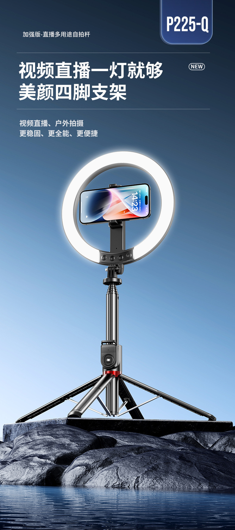 P220QRGB 대형 원형 램프 새로운 레벨 셀카봉 블루투스 필 라이트 고성능 안정기 블루투스 셀카봉스토어 가기