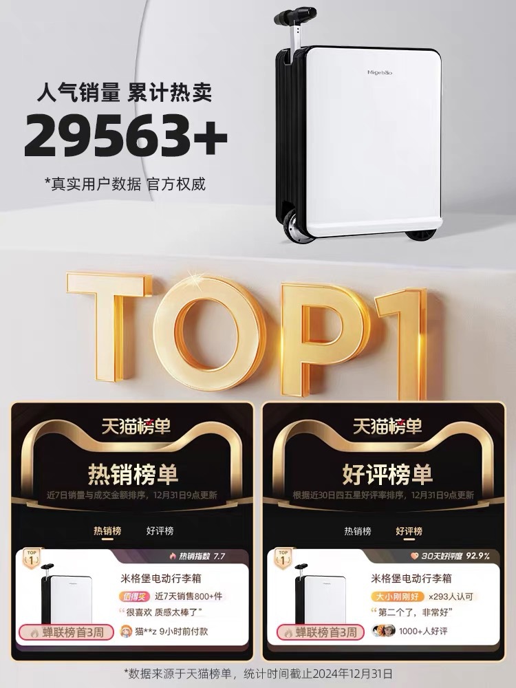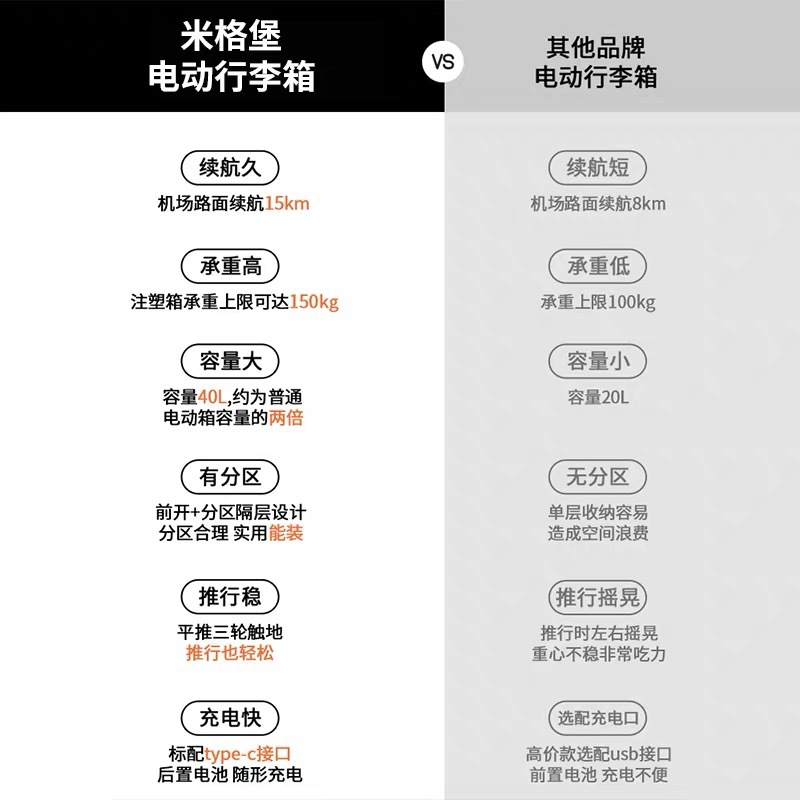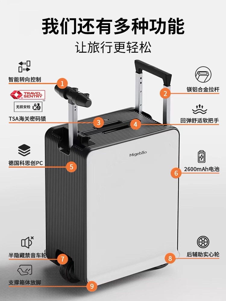 2025 Migbao 소스 공장 새로운 전기 가방 타기 및 여행은 긴 내구를위한 탑승 가능 15KM스토어 가기