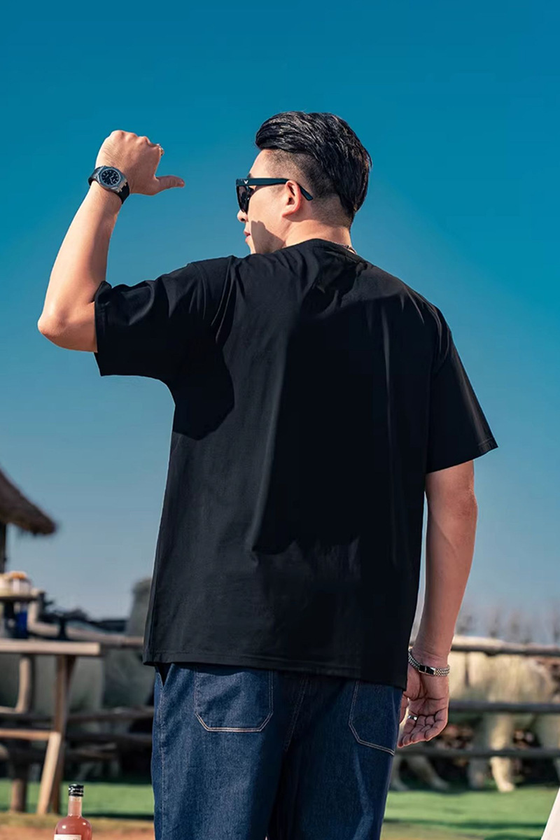 초대형 남성 여름 라운드 넥 반팔 티셔츠 뚱뚱한 남자 캐주얼 200kg 착용 가능한 트렌디 브랜드 뚱뚱한 남자 반팔 티셔츠스토어 가기