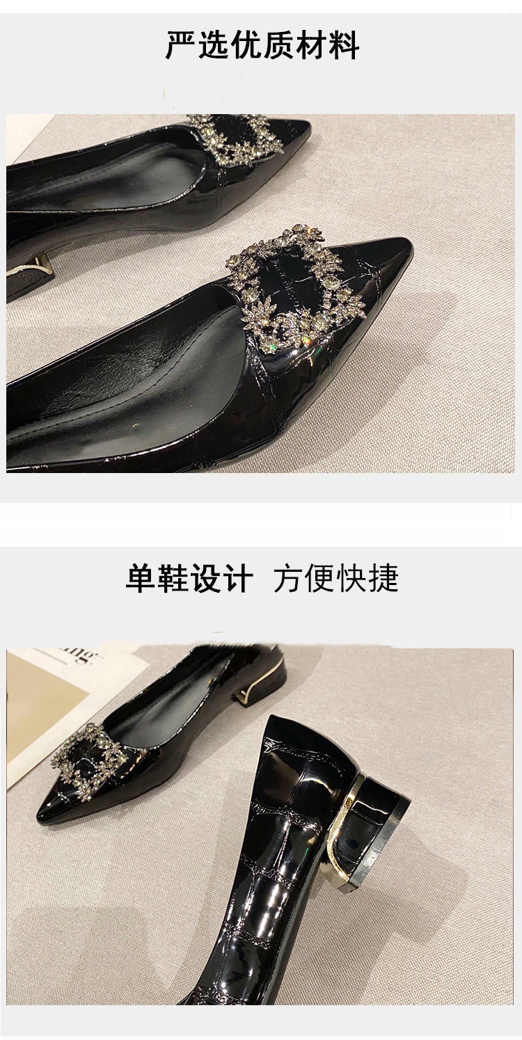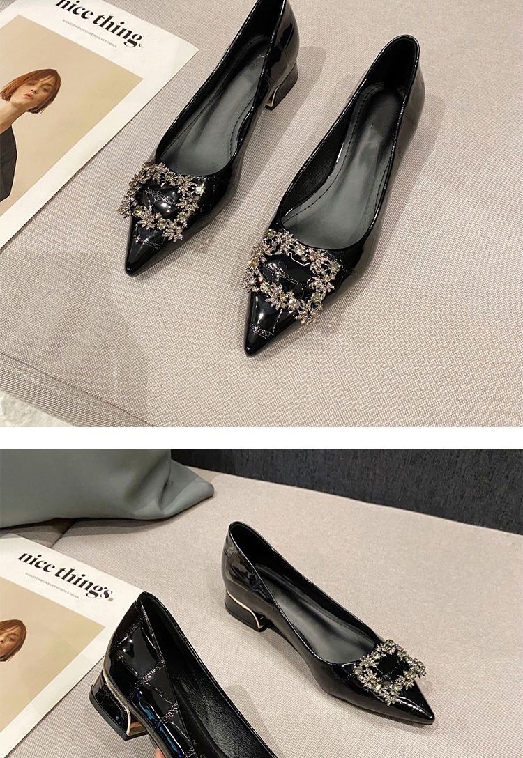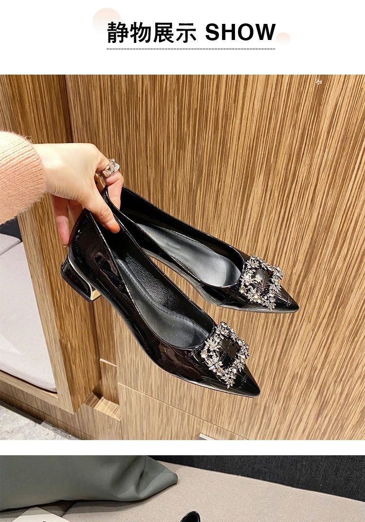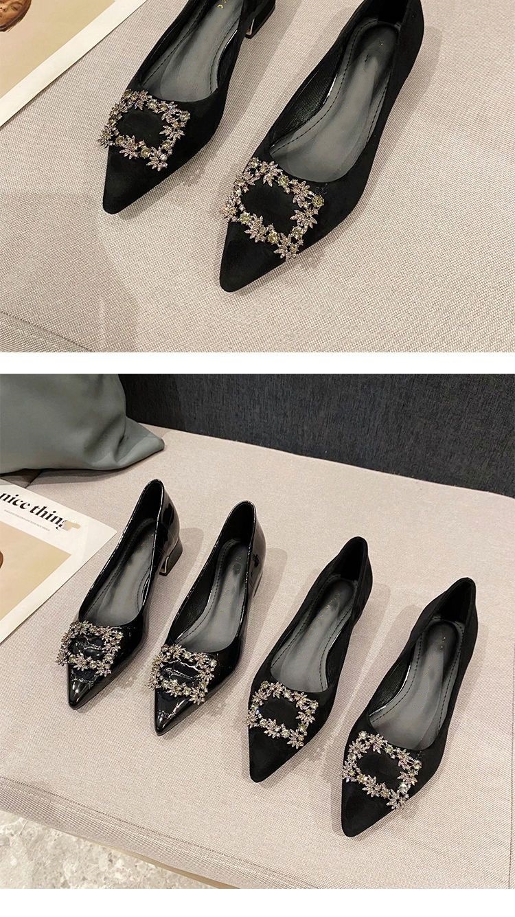 여성을 위한 라인스톤 두꺼운 굽 싱글 슈즈, 틈새 디자인, 2025년 새로운 스타일, 여성용 뾰족한 앞코, 얕은 입구, 플랫 바닥, 프렌치 블랙 작업화스토어 가기
