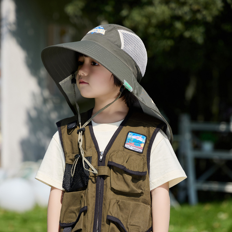 어린이 어부 모자 여름 태양 보호 모자 통기성 소년과 소녀 목도리 태양 학생 큰 챙 2882-6