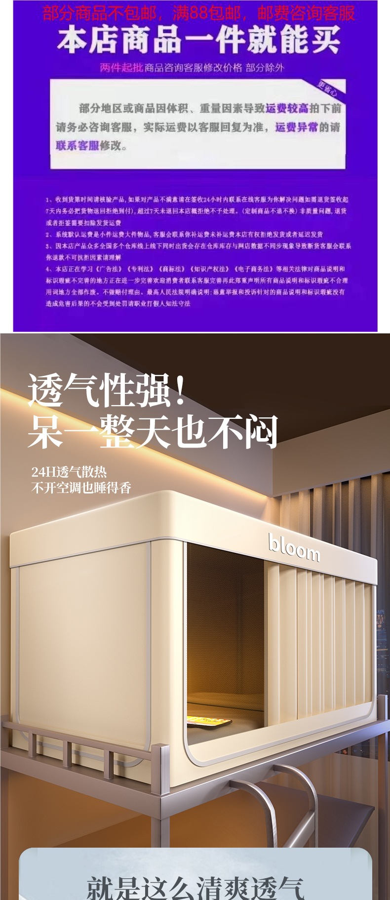 대학생 기숙사 일체형 밀폐형 강력 차광 침대 커튼 모기장 일체형 기숙사 싱글 이층 침대