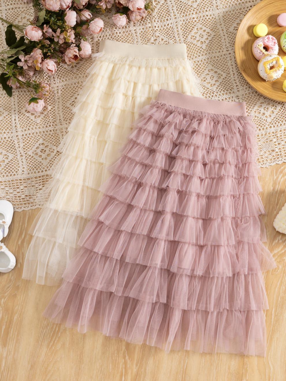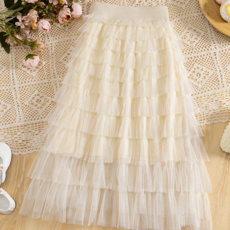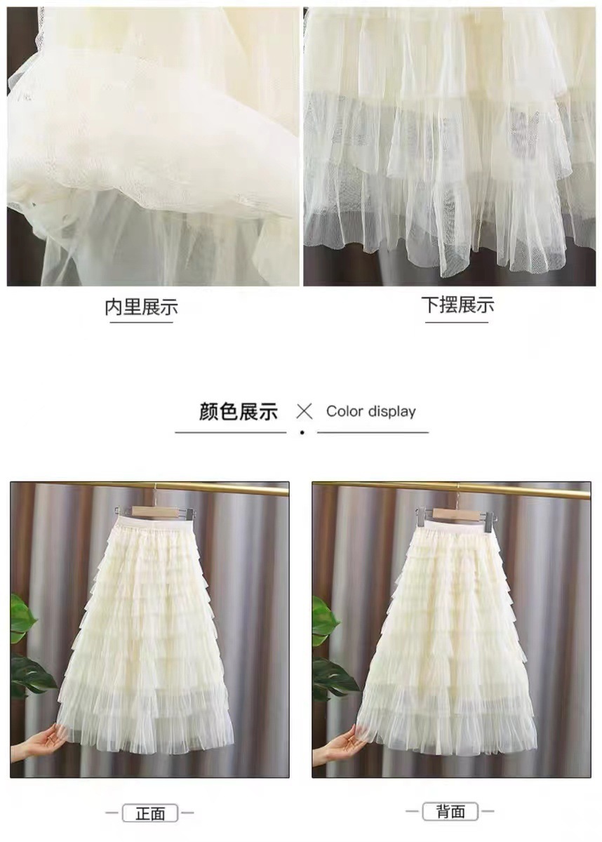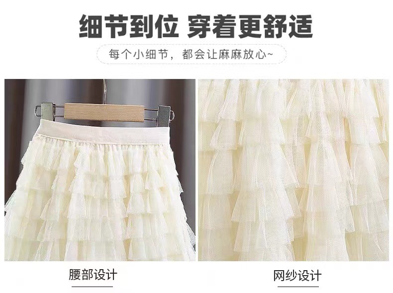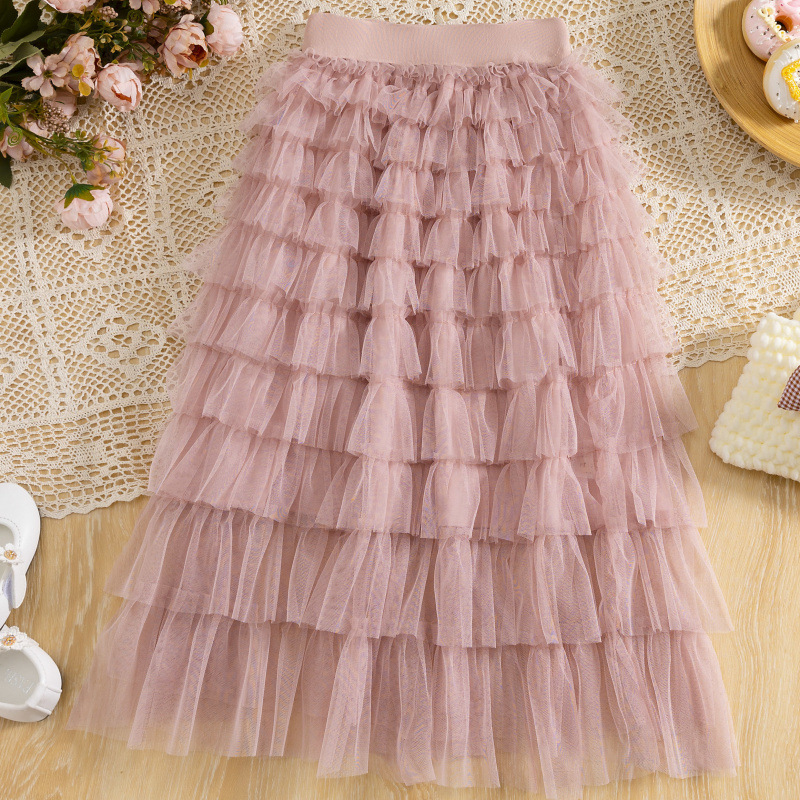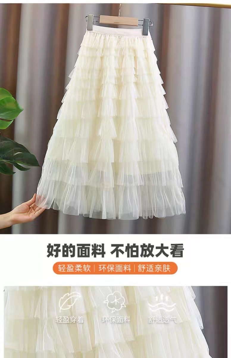 여자 스커트 2025 여름 새로운 어린이 메쉬 스커트 큰 어린이 케이크 스커트 유행 공주 스커트