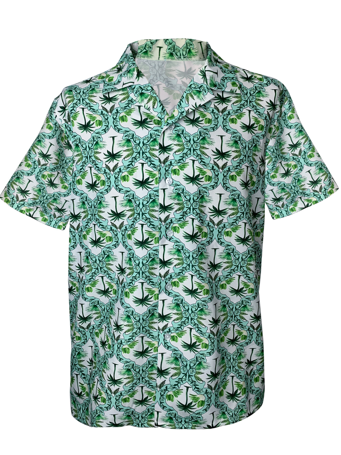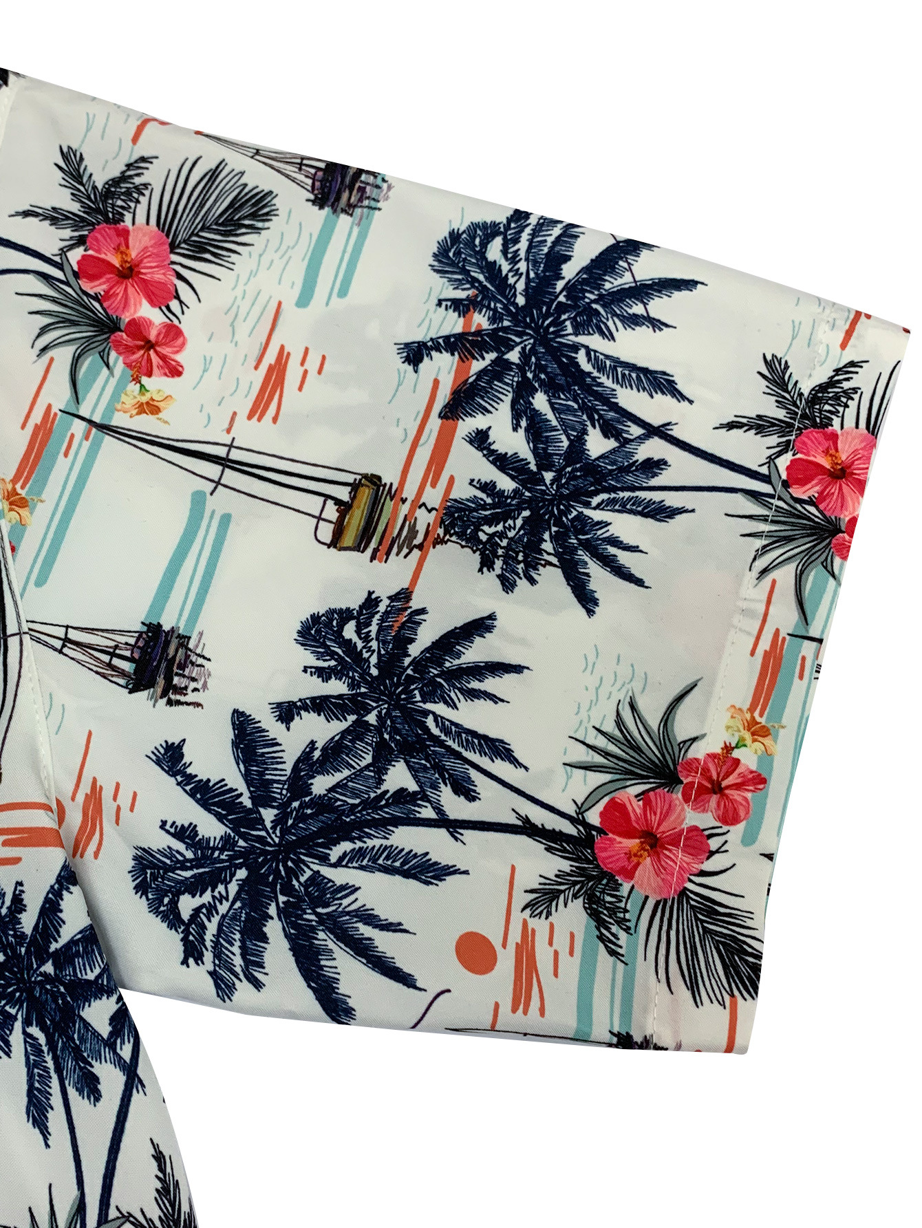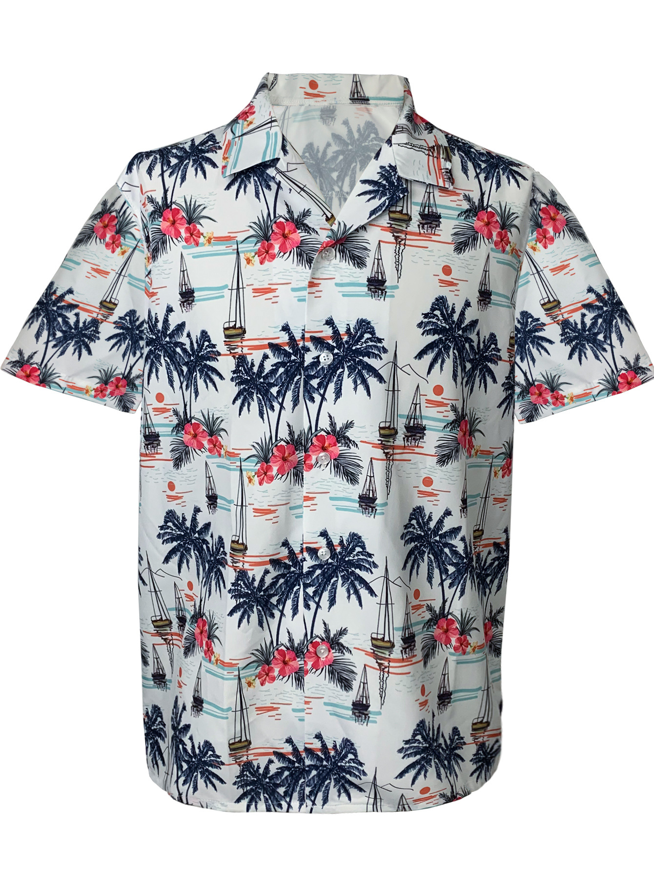아마존 폭발 하와이 셔츠 코코넛 트리 프린트 남성 캐주얼 여름 짧은 소매 유럽 크기