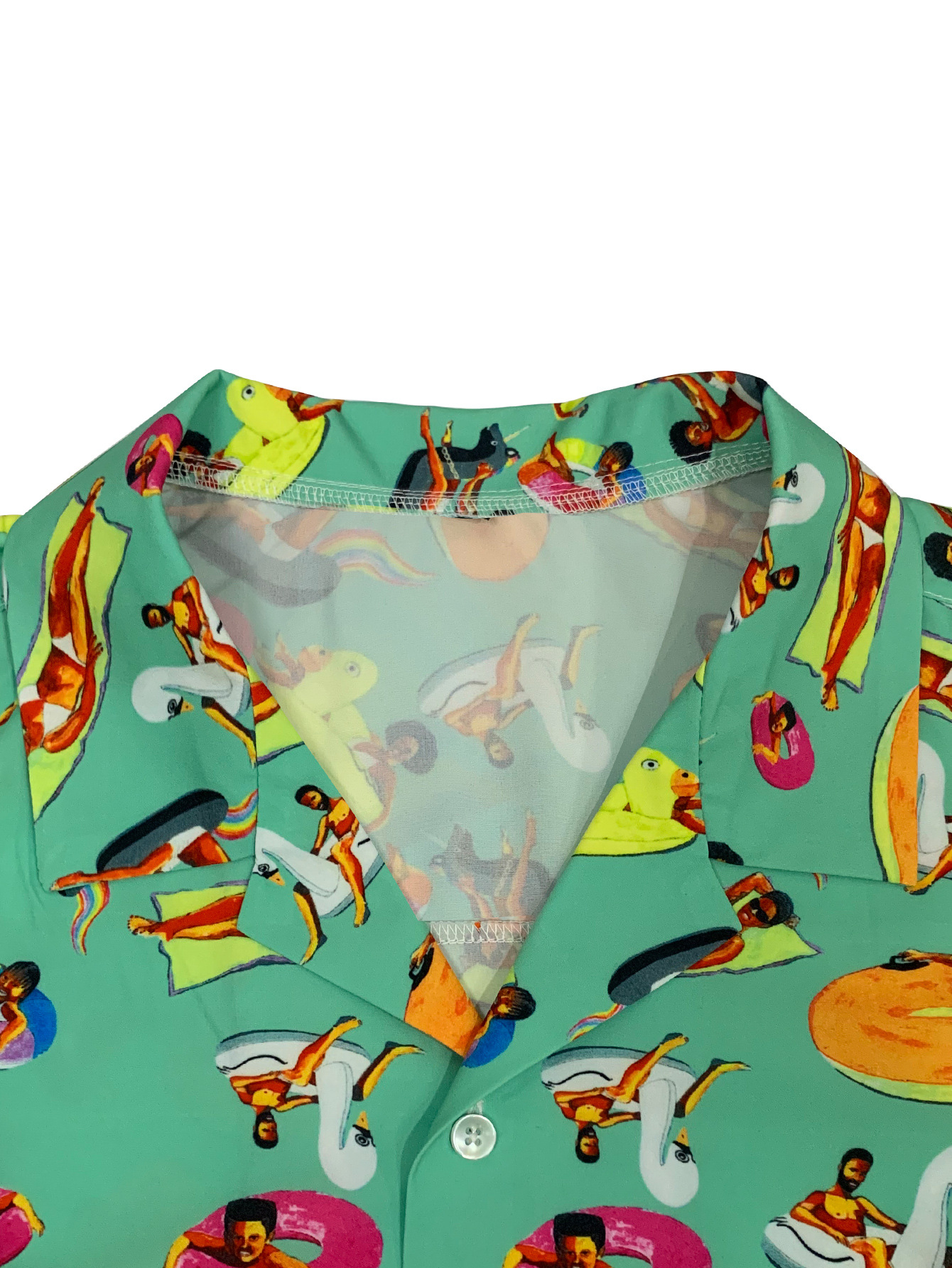 아마존 폭발 하와이 셔츠 코코넛 트리 프린트 남성 캐주얼 여름 짧은 소매 유럽 크기스토어 가기