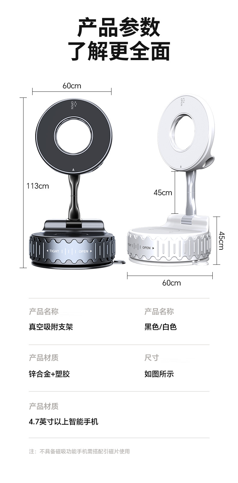 새로운 마그네틱 웨이브 브래킷 흡입 컵 데스크탑 홈 여행 다기능 접이식 리프팅 게으른 남자스토어 가기