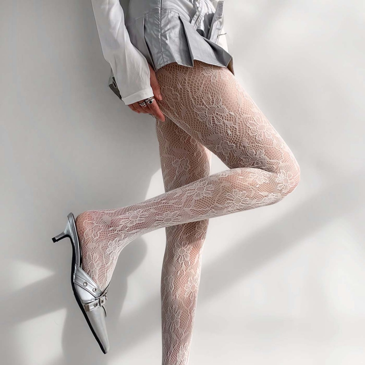 여성용 흰색 스타킹, 얇고 순수하며 달콤하고 섹시한 레이스 핫걸 자카드 양말, 걸림 방지, 아름다운 다리, 검은색 망사 양말스토어 가기