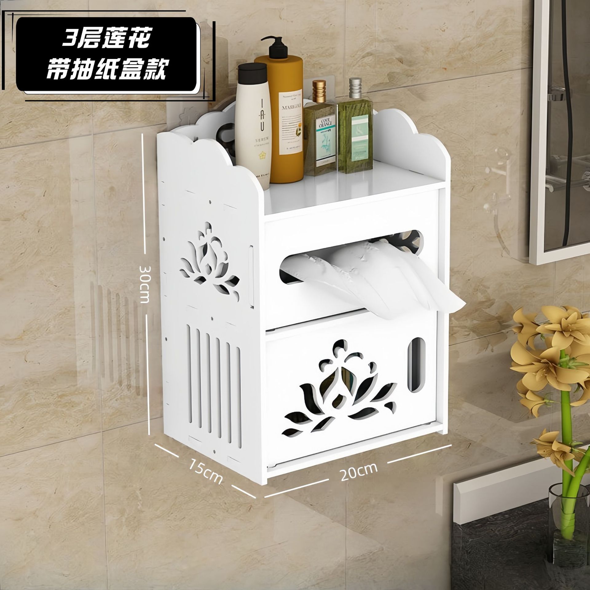 • 3단 연꽃 디자인 티슈 케이스 (서랍형)