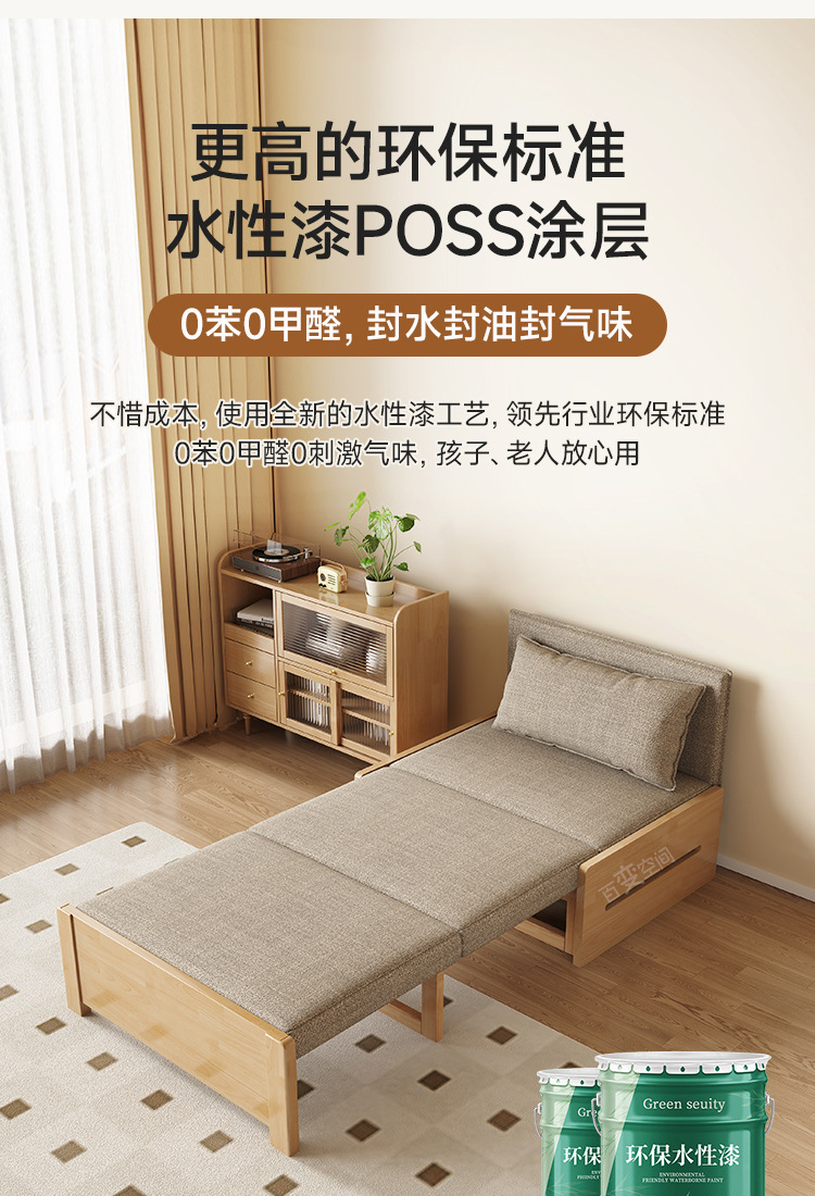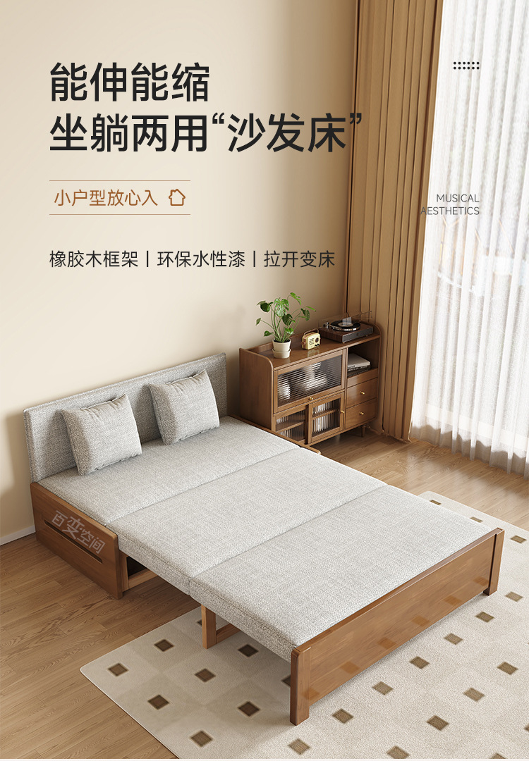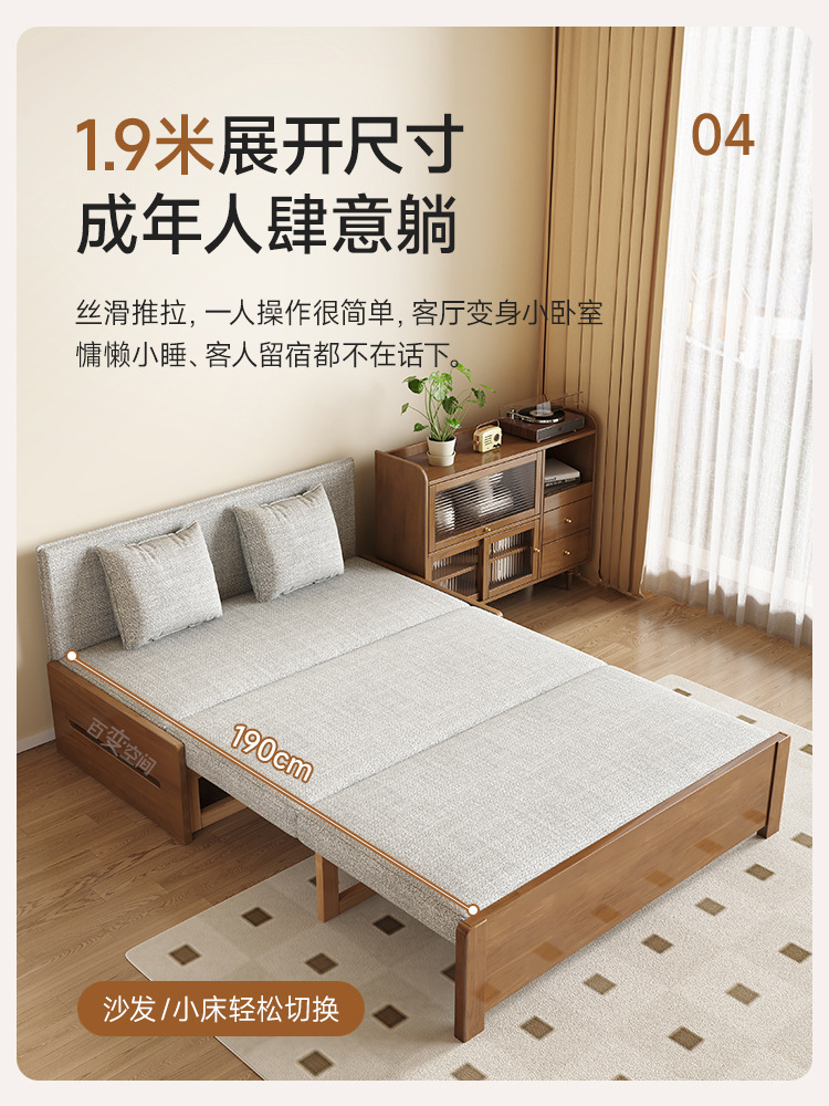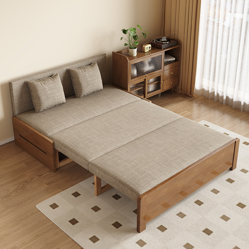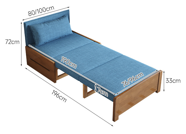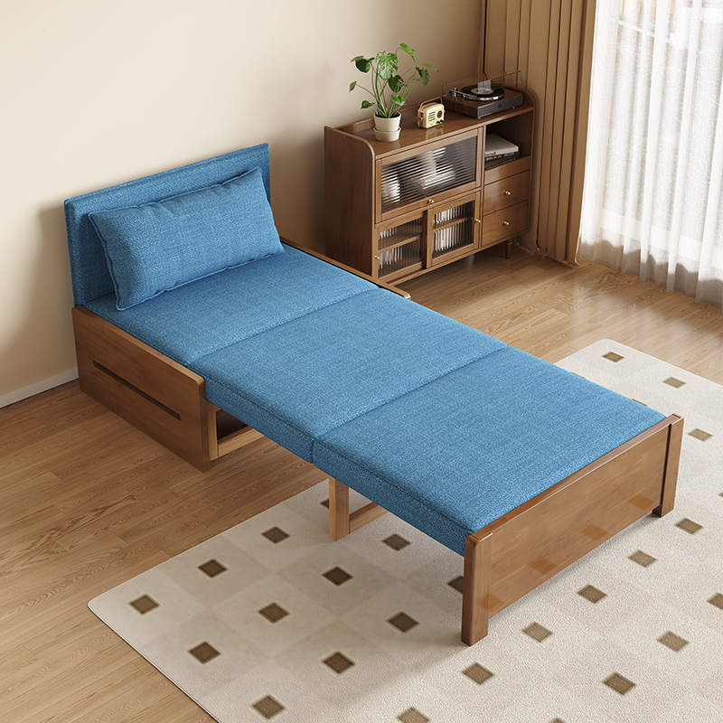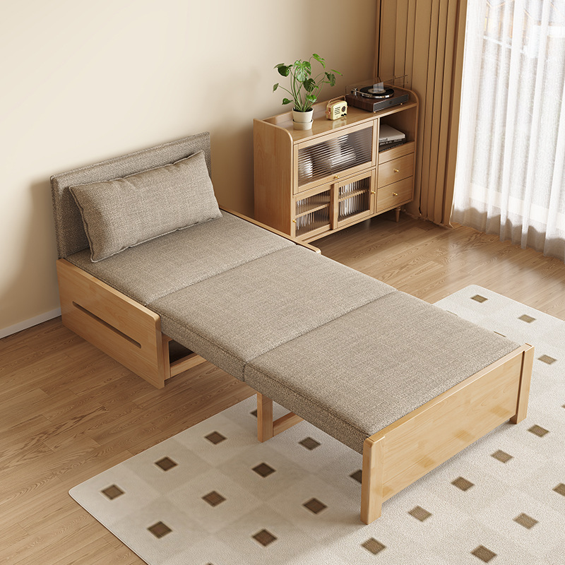 싱글 솔리드 우드 소파 침대 현대 간단한 접이식 침대 망원경 발코니 작은 아파트 거실 이중 목적 풀 아웃 소파