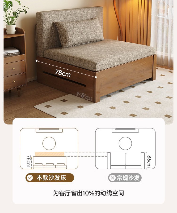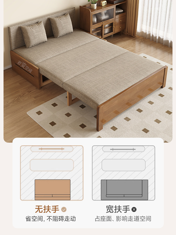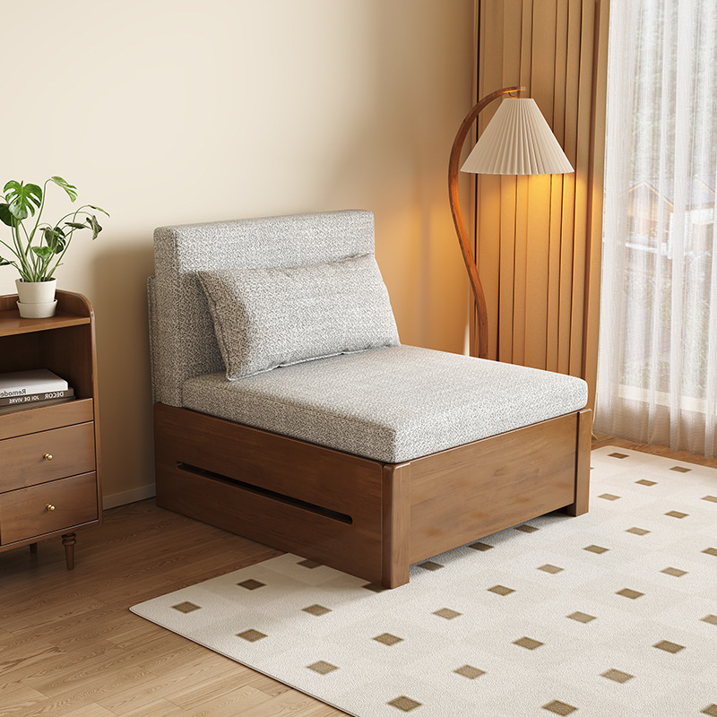 싱글 솔리드 우드 소파 침대 현대 간단한 접이식 침대 망원경 발코니 작은 아파트 거실 이중 목적 풀 아웃 소파스토어 가기