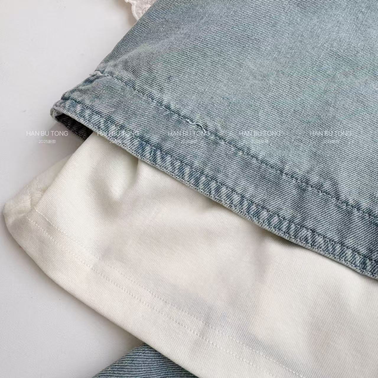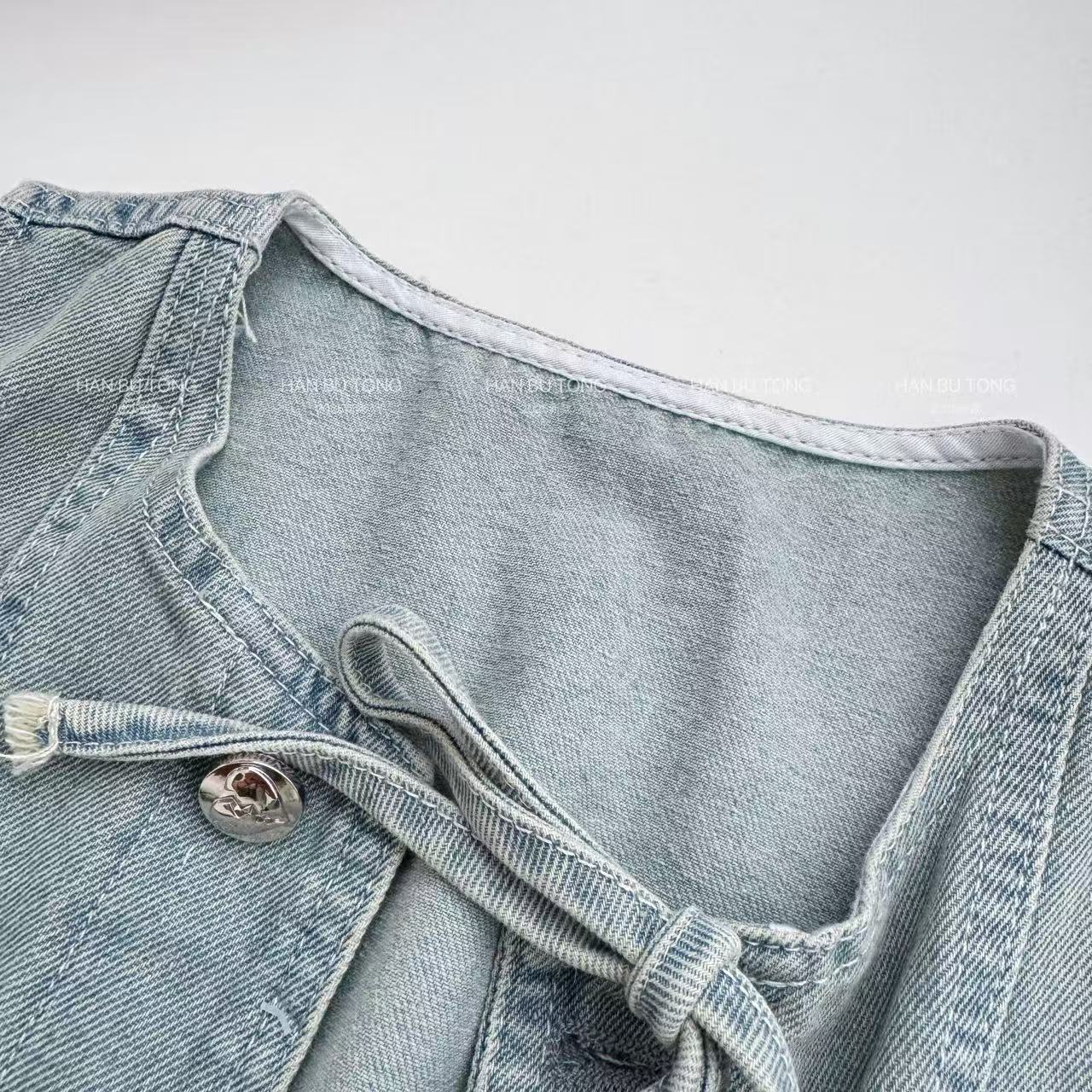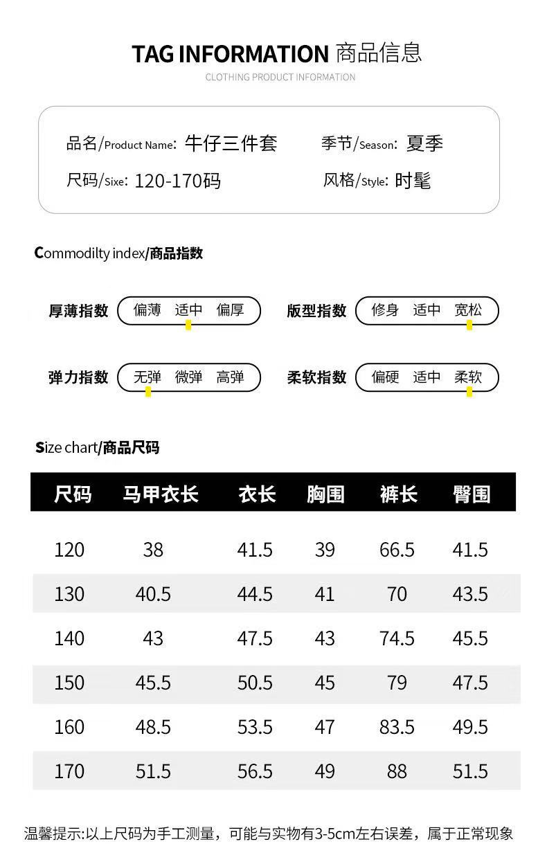 여자 여름 세트 2025 새로운 어린이 서양식 큰 어린이 여름 데님 조끼 반팔 티셔츠 3 피스 유행 세트스토어 가기