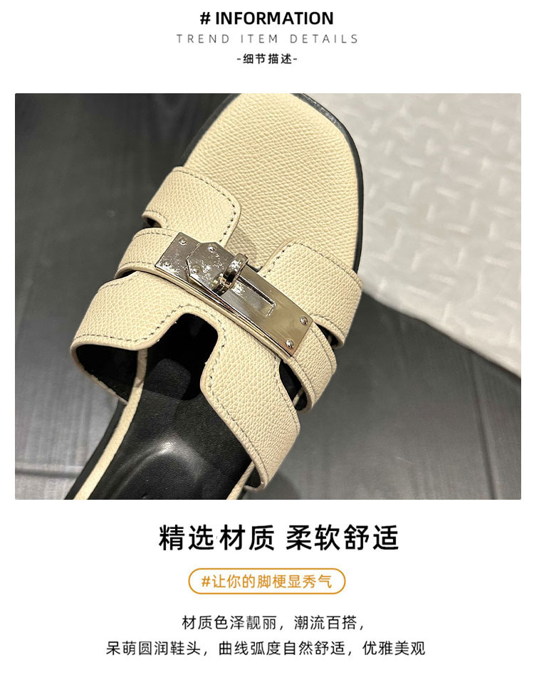 실버 작은 자물쇠 플랫 슬리퍼 여성 여름 2025 새로운 도착 슬라이드 슬리퍼 휴가 유행 의류 프렌치 샌들스토어 가기