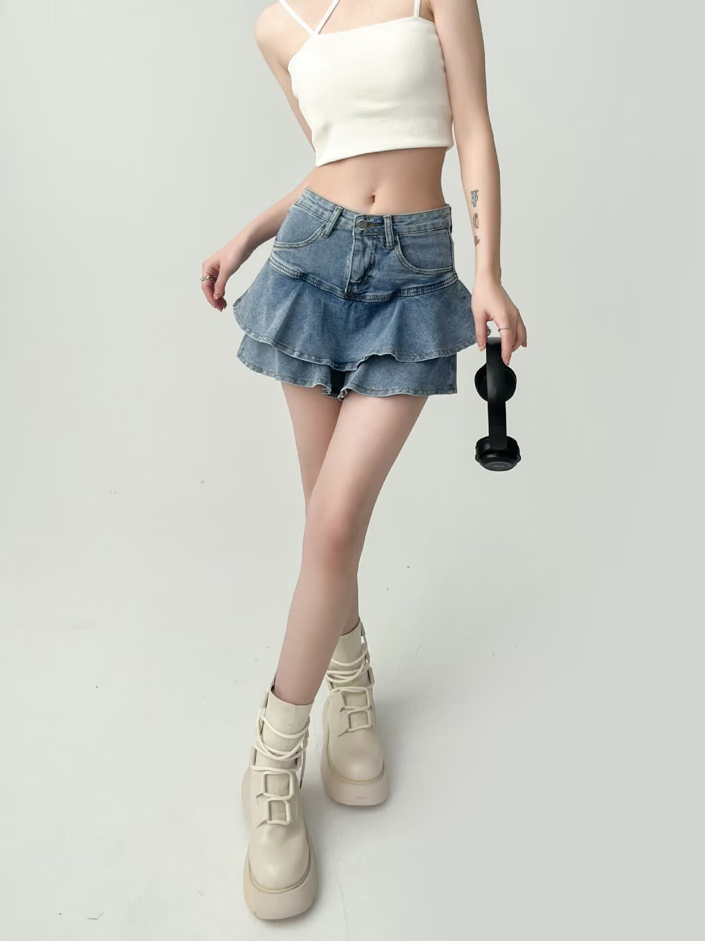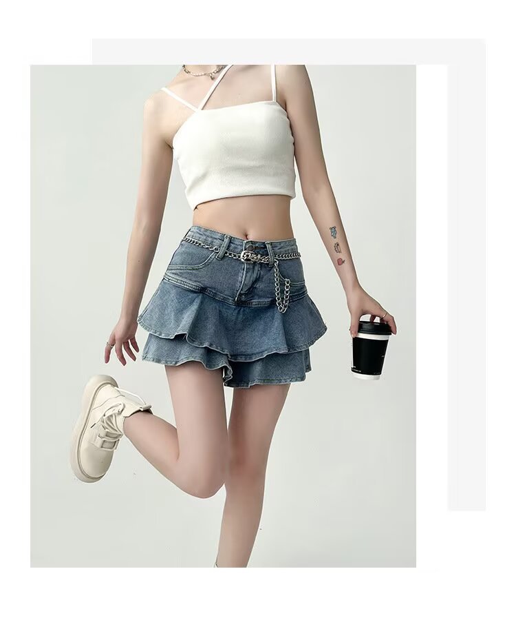 여성용 러플 데님 스커트, 여름 하이웨이스트 케이크 스커트, 슬리밍 힙 커버, A라인, 몸집이 작은 핫걸, 초짧은 피쉬테일 스커트스토어 가기