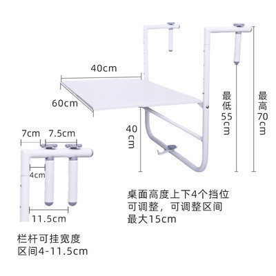 발코니 난간 교수형 테이블 접이식 리프팅 테이블 컴퓨터 테이블 홈 소형 바 테이블 식탁 야외 가드 레일 테이블
