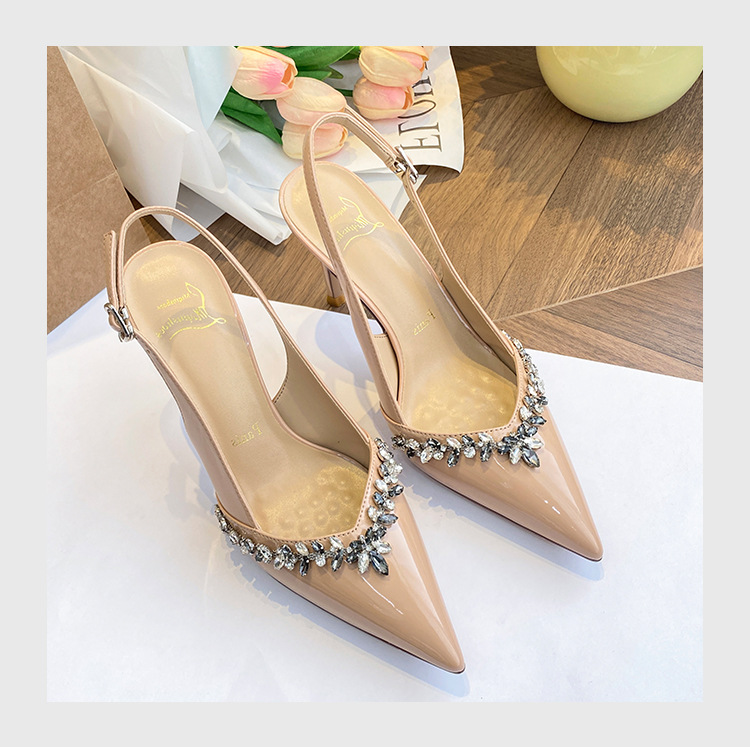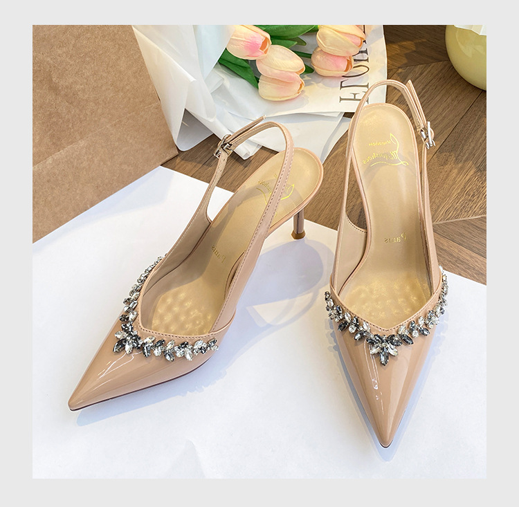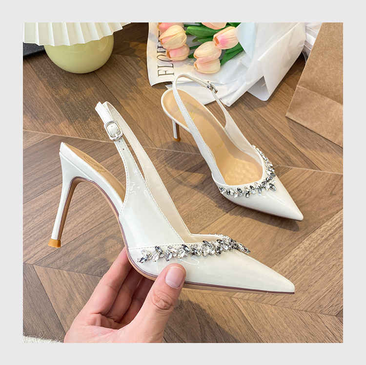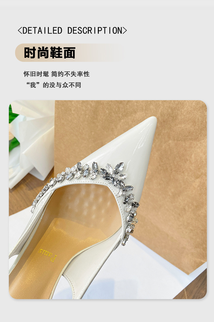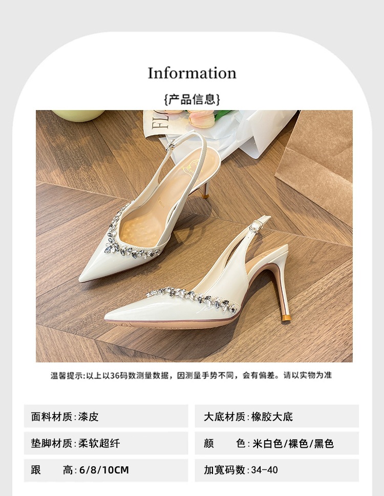 미색 워터다이아몬드 하이힐 여성용 스틸레토 힐 2026 여름 신상 프렌치 스타일 포인티드 토 샌들 섹시하고 우아한 여성용 슈즈스토어 가기