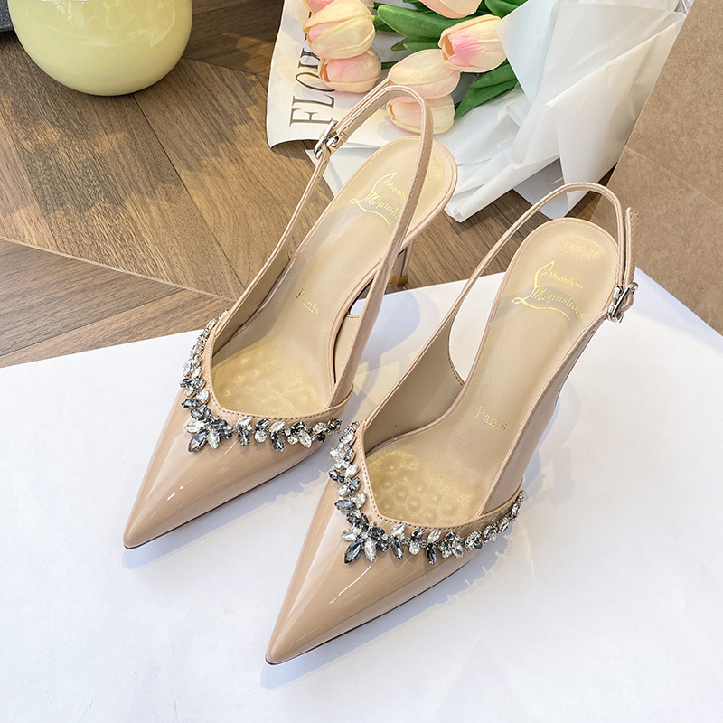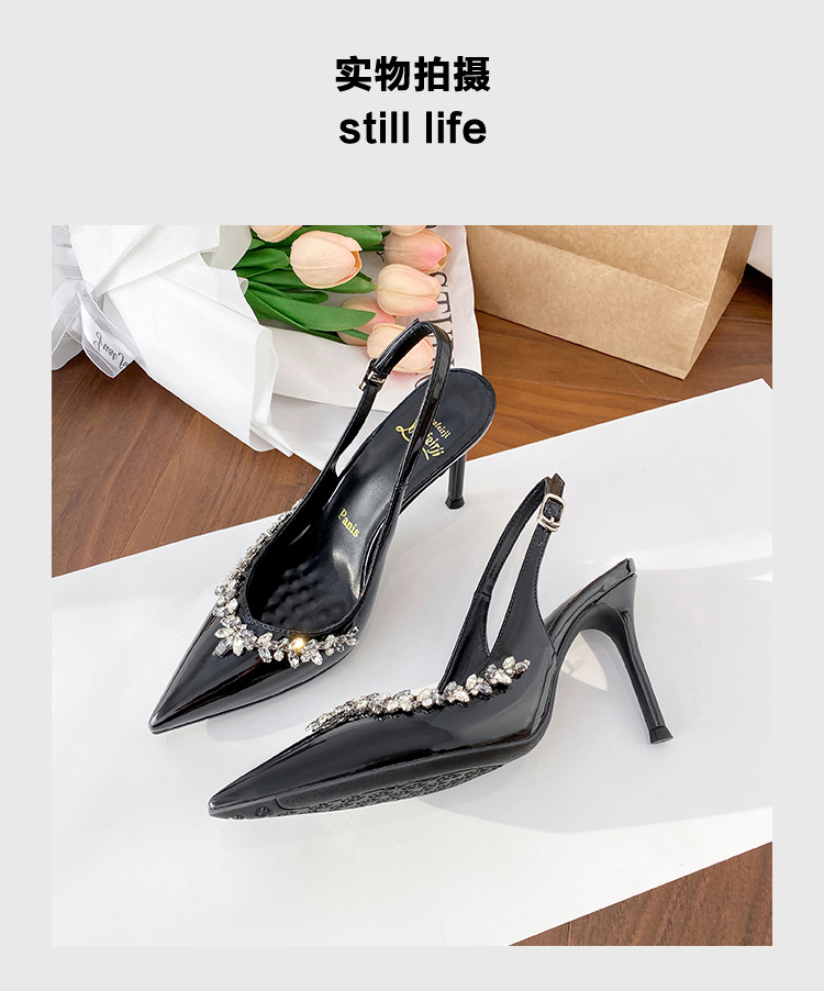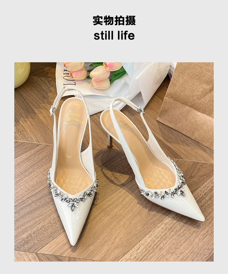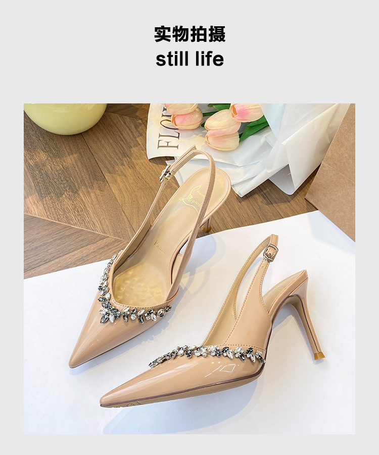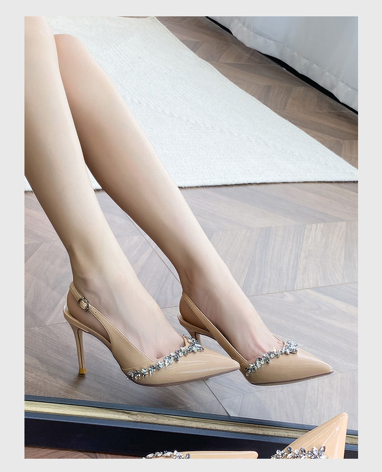 미색 워터다이아몬드 하이힐 여성용 스틸레토 힐 2026 여름 신상 프렌치 스타일 포인티드 토 샌들 섹시하고 우아한 여성용 슈즈스토어 가기