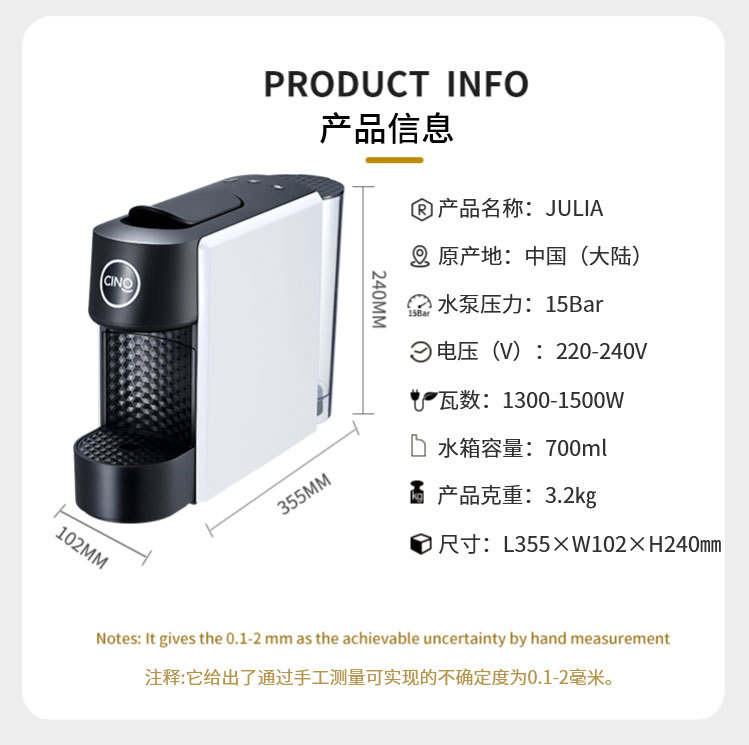 시노 쥐리아 캡슐 커피 머신, 원터치 간편 추출, 다양한 장면에 적합, 제조사 직배송