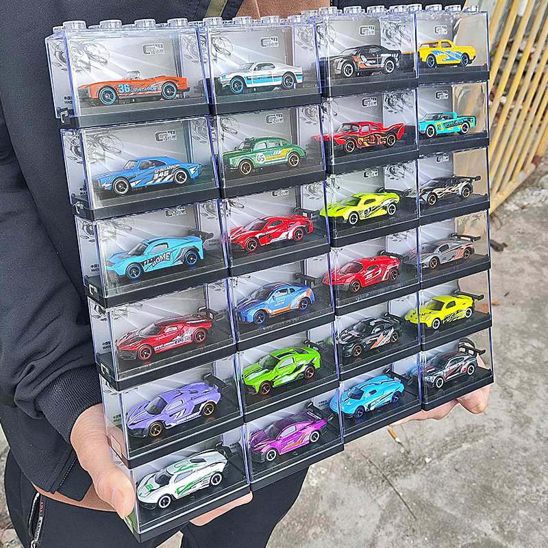 레몬 시뮬레이션 컬렉션에 합금 자동차 모델 럭셔리카 로고 장난감 절묘한 레이싱 선물 빌딩 블록 디스플레이 박스 배치