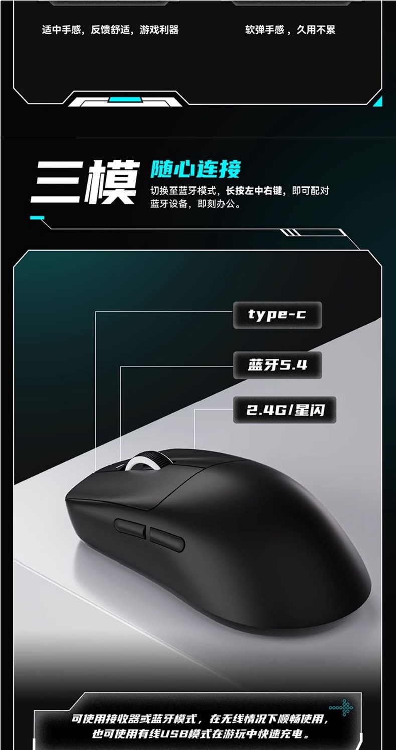 VXE 잠자리 R1 Weijie 스타 플래시 무선 블루투스 마우스 게임 긴 내구성 정량화 된 인체 공학