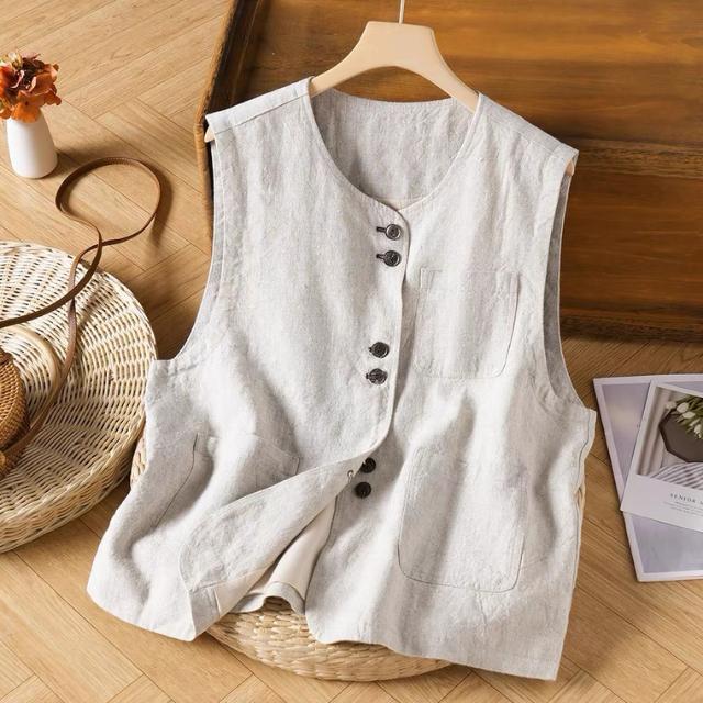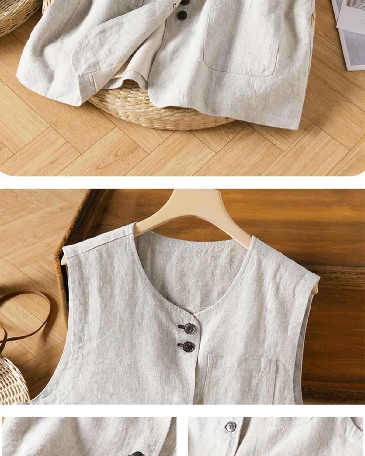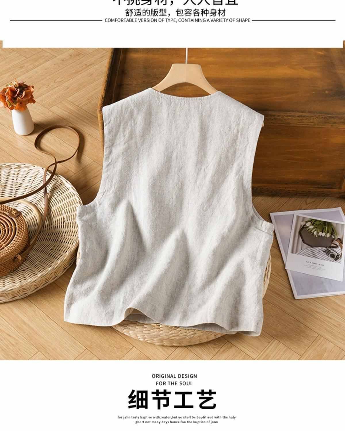 예술적 면화 및 린넨 조끼 여성 여름 짧은 민소매 조끼 조끼 캐주얼 루즈 여성스토어 가기