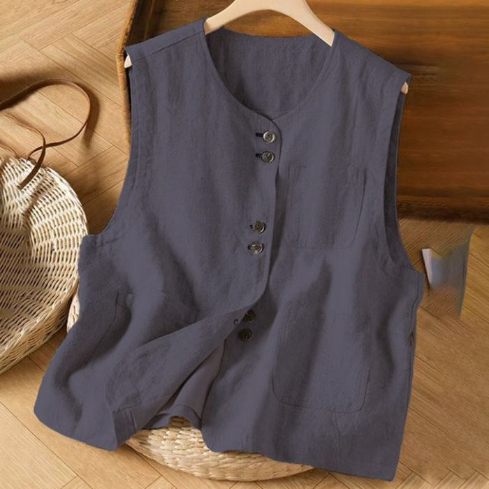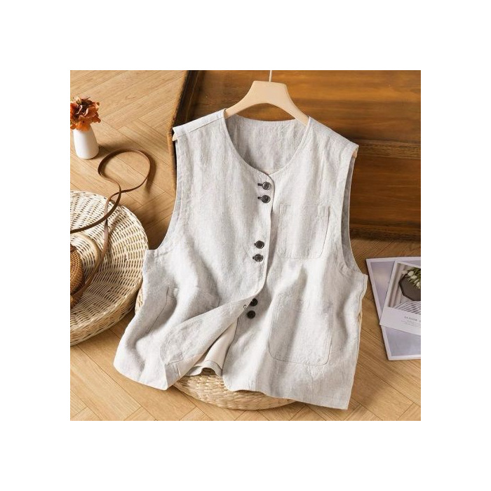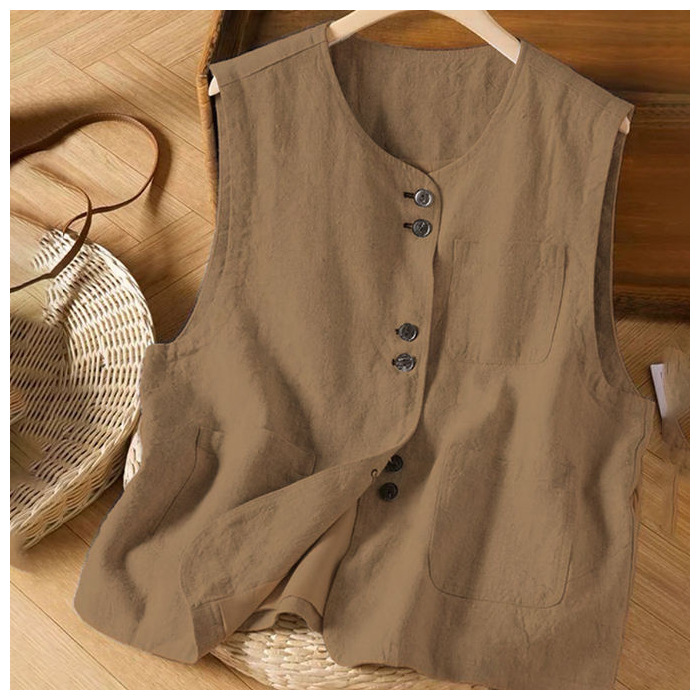 예술적 면화 및 린넨 조끼 여성 여름 짧은 민소매 조끼 조끼 캐주얼 루즈 여성