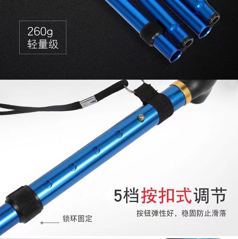 야외 지팡이 알루미늄 합금 하이킹 노인 4 섹션 오프로드 텔레스코픽 하이킹 지팡이 휴대용 지팡이 접이식스토어 가기
