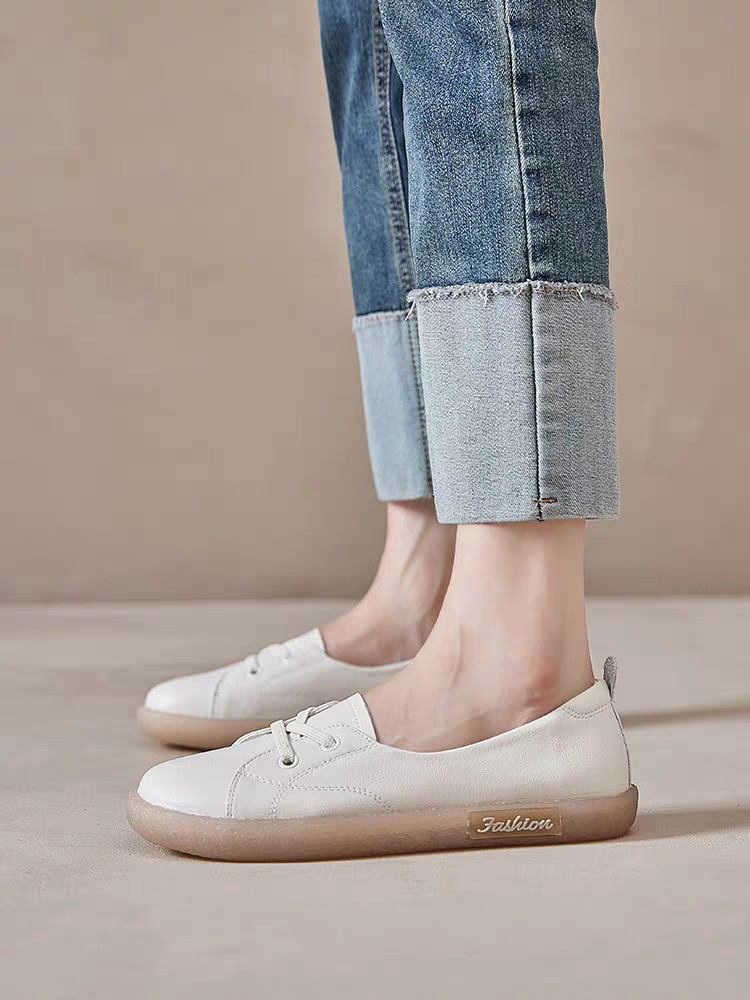 여성용 천연 가죽 화이트 슈즈 2026년 신상 여름 다용도 슬립온 소가죽 부드러운 밑창 임산부 신발 얕은 굽 싱글 슈즈스토어 가기