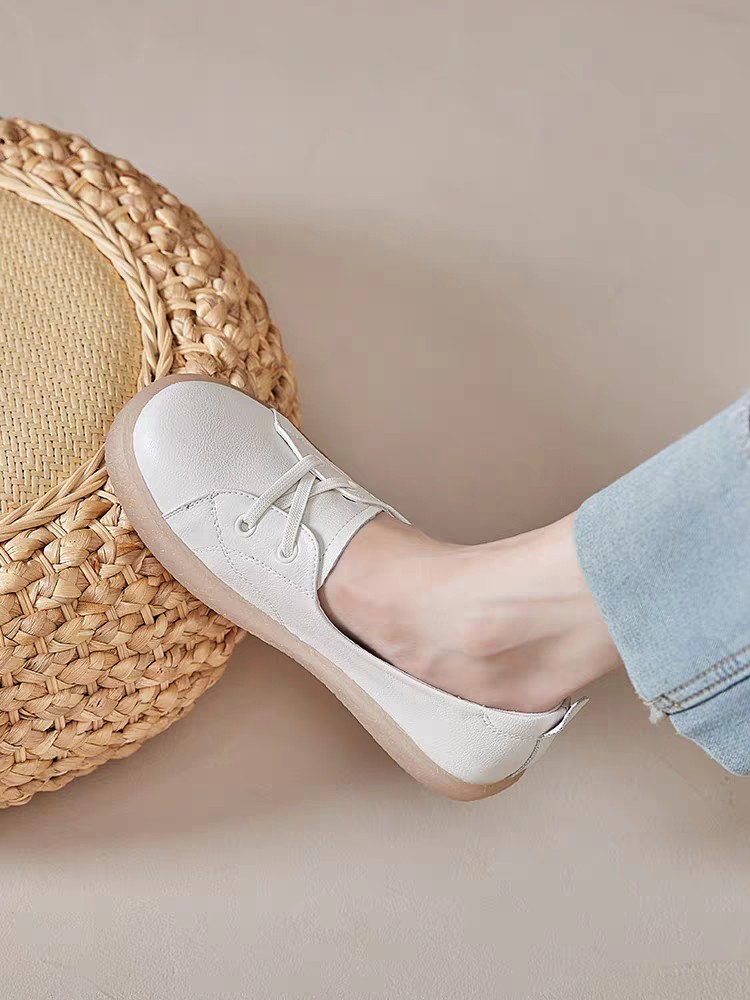 여성용 천연 가죽 화이트 슈즈 2026년 신상 여름 다용도 슬립온 소가죽 부드러운 밑창 임산부 신발 얕은 굽 싱글 슈즈