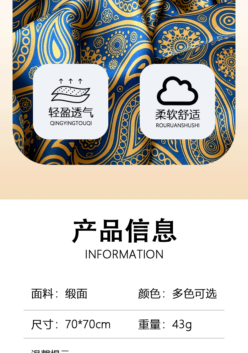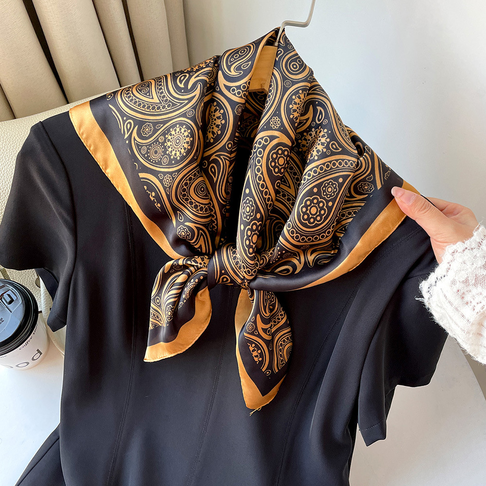 2025 라이트 럭셔리 캐슈 꽃 스카프 남성 복고풍 스퀘어 스카프 넥타이 시뮬레이션 실크 새틴 스카프 도매