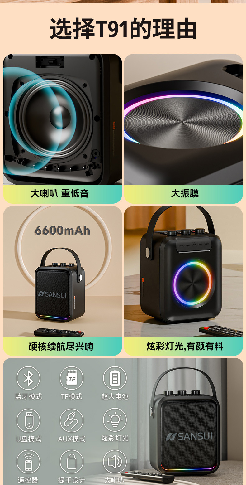 Shanshui T91 블루투스 스피커 야외 노래방 특수 서브 우퍼 휴대용 자동차 휴대용 카드 소형 스피커스토어 가기