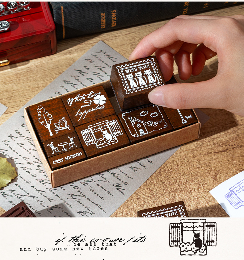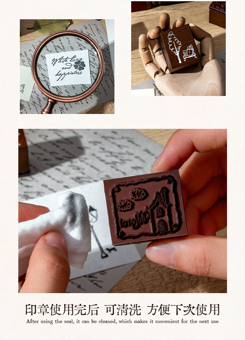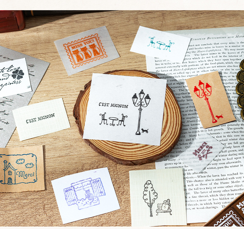 프랑스어 축복 문구 씰 세트, 크로스보더 복고풍 로터스 나무 핸드북 씰, 고급 핸드북 씰 9개스토어 가기