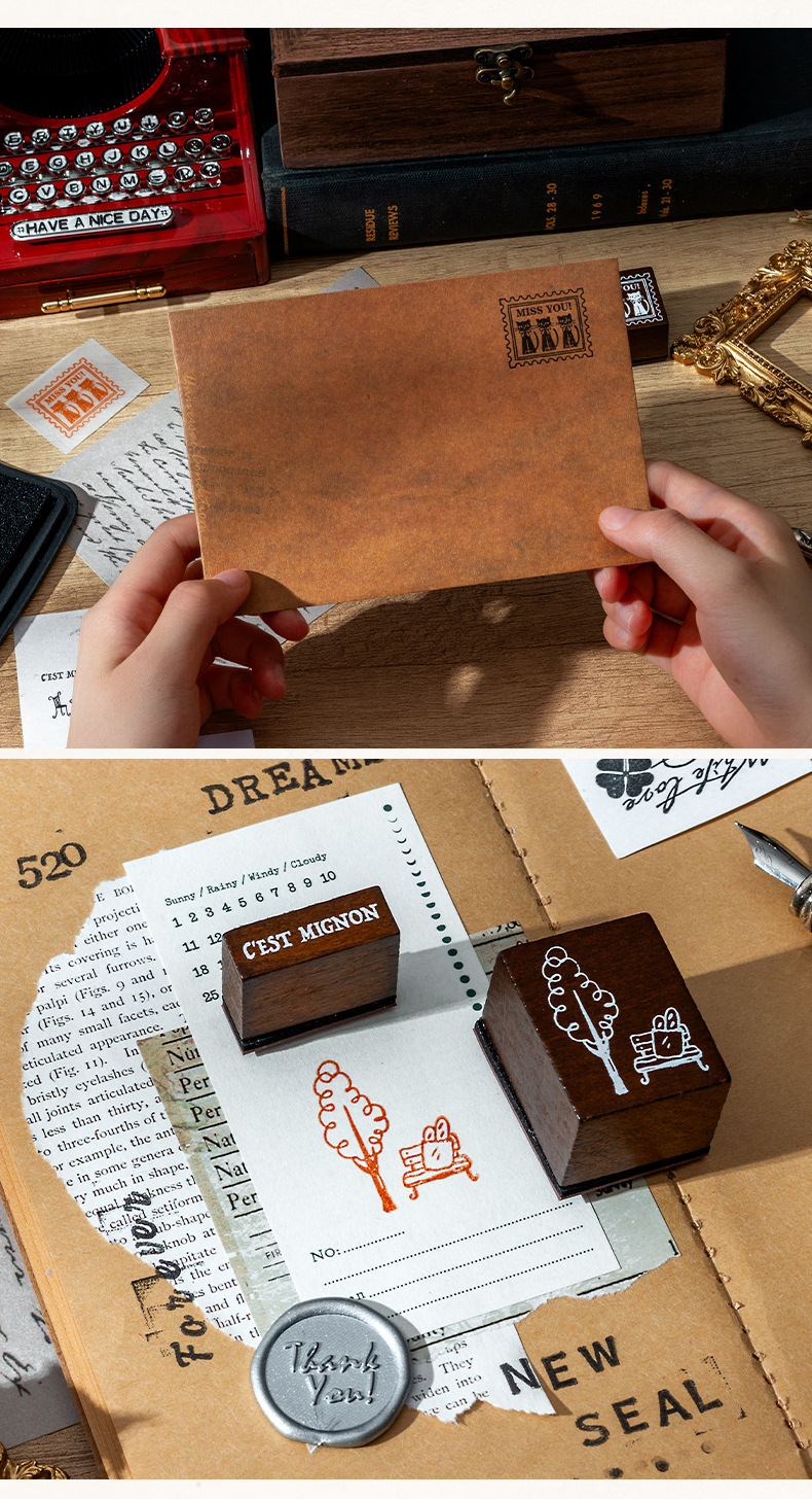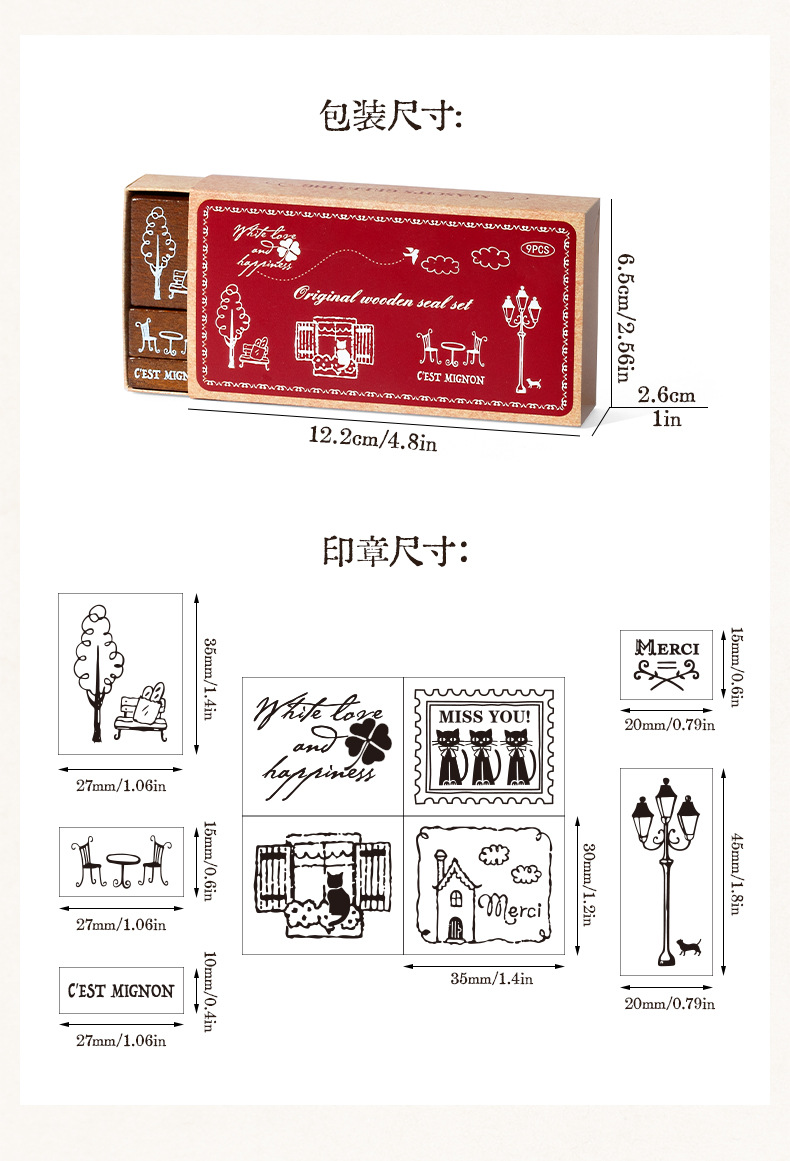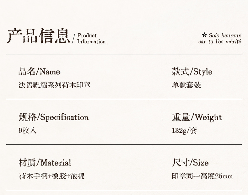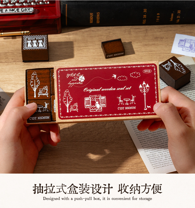 프랑스어 축복 문구 씰 세트, 크로스보더 복고풍 로터스 나무 핸드북 씰, 고급 핸드북 씰 9개