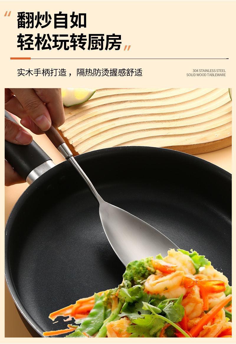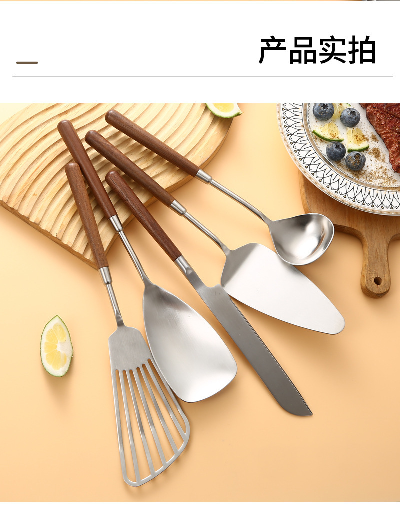 호두나무 손잡이 304 스테인레스 스틸 주방용품 서양식 레스토랑 프라이팬 스푼 쌀 스푼 케이크 주걱 주방용품 소형 도구 세트스토어 가기