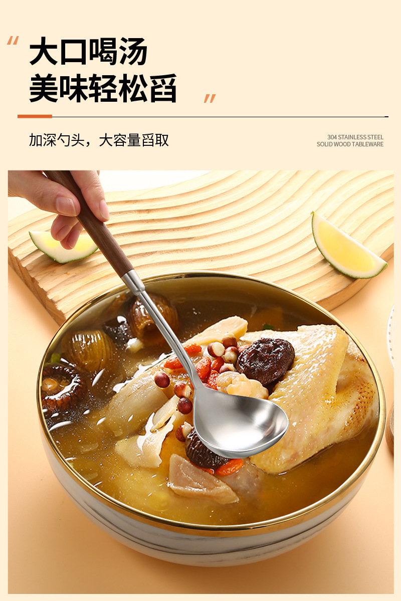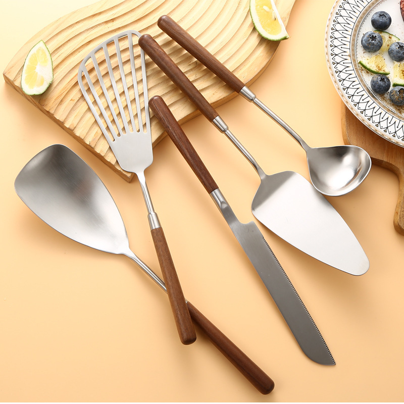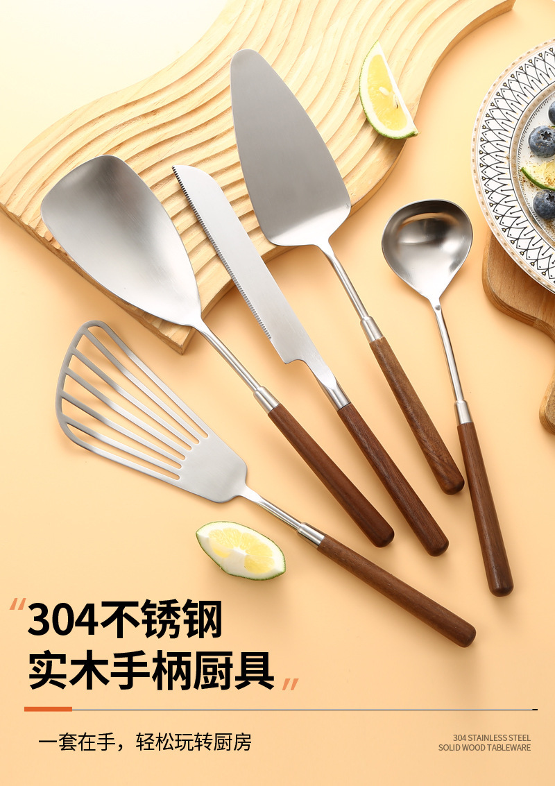 호두나무 손잡이 304 스테인레스 스틸 주방용품 서양식 레스토랑 프라이팬 스푼 쌀 스푼 케이크 주걱 주방용품 소형 도구 세트