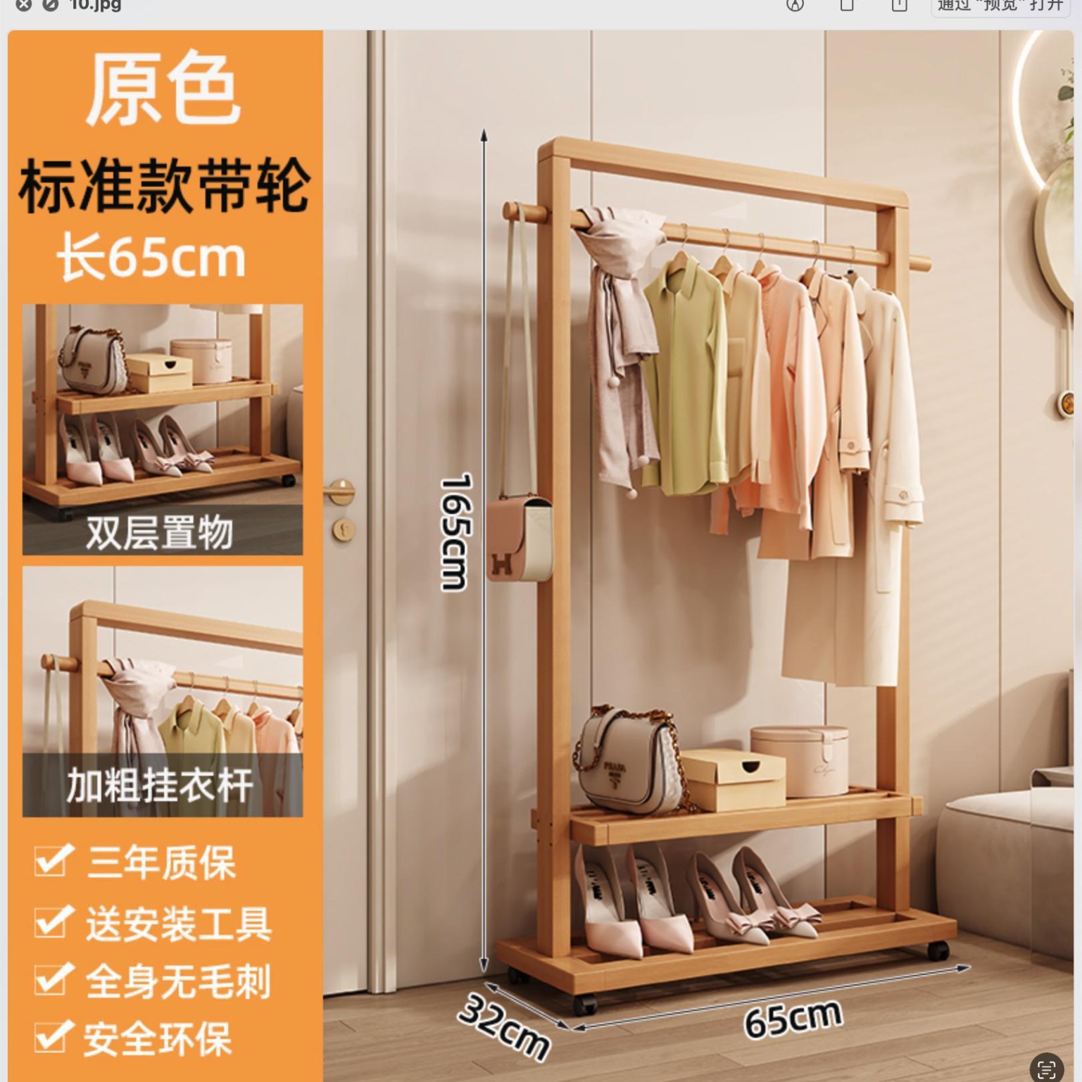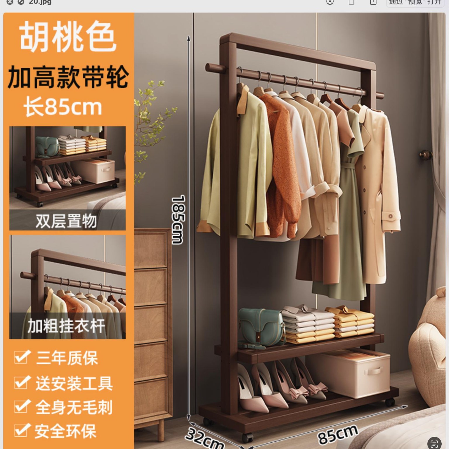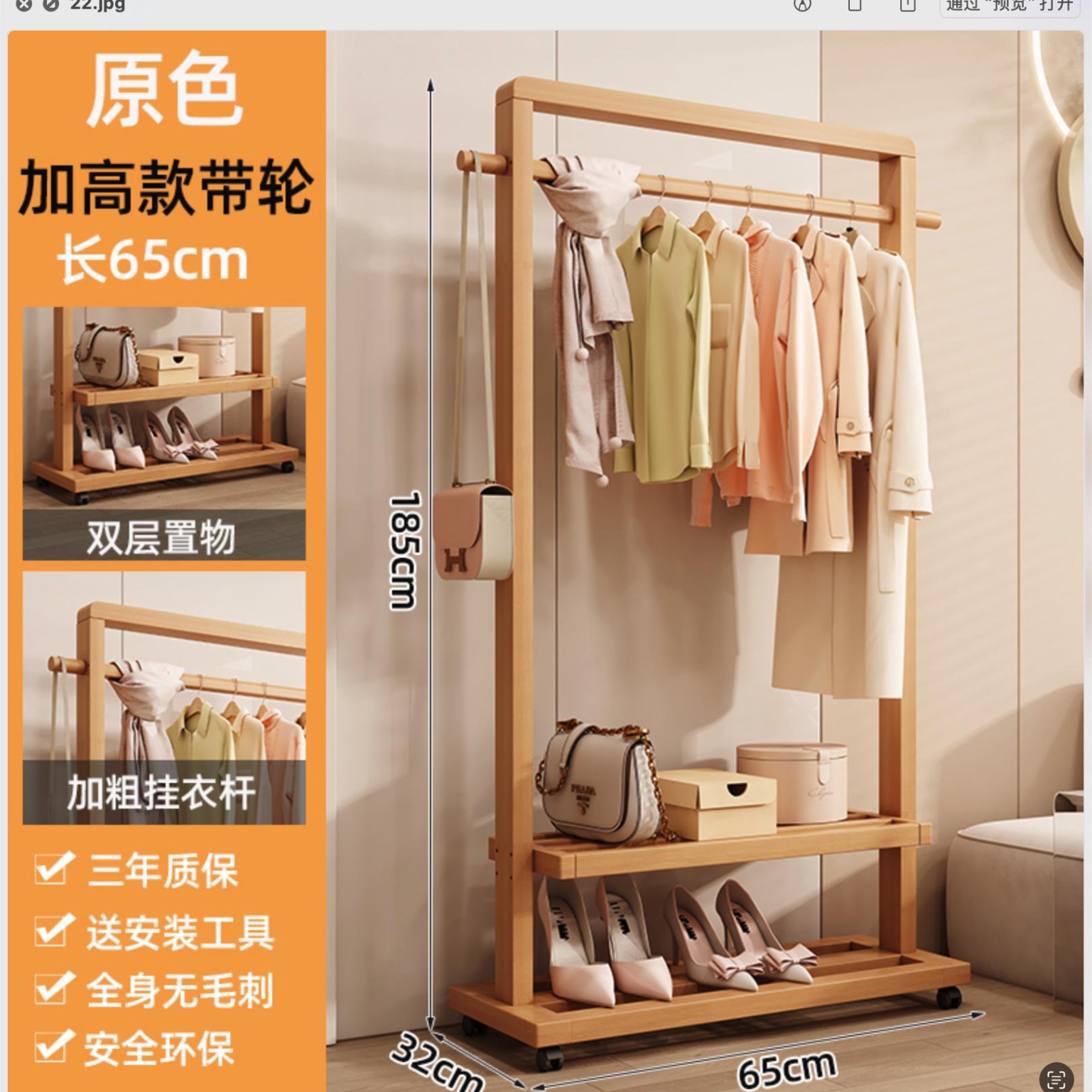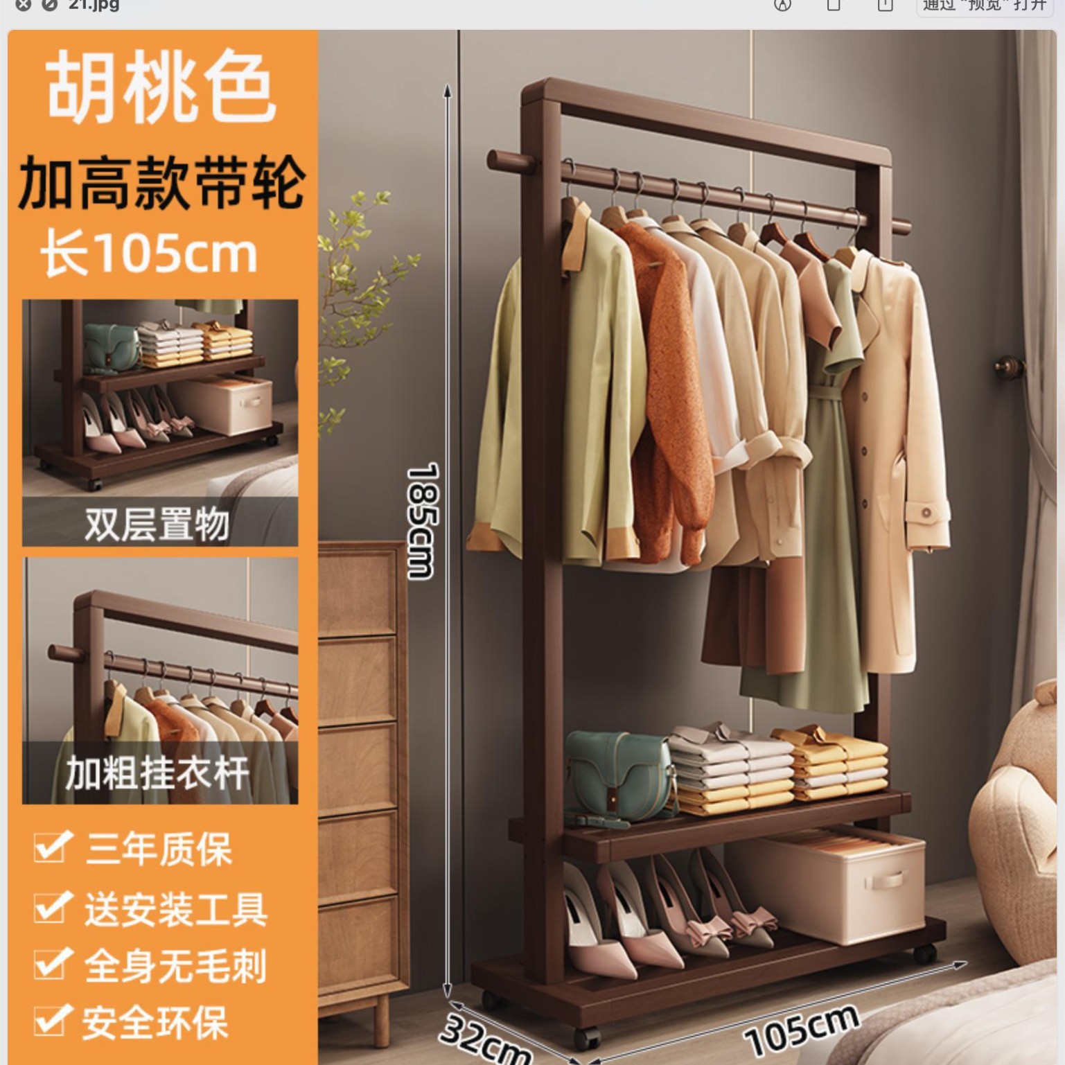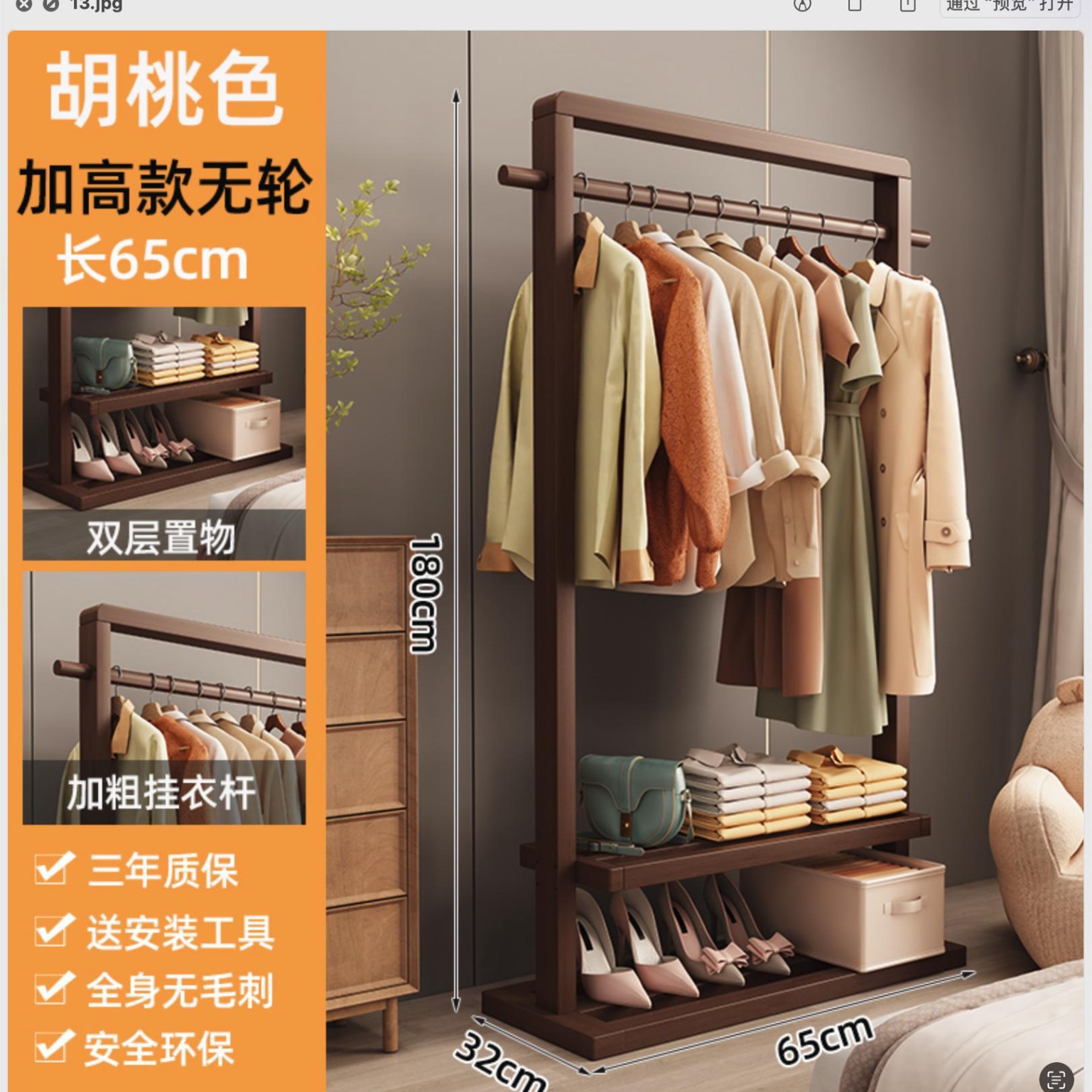 • 65호두색 높이 옷걸이(바퀴 포함)