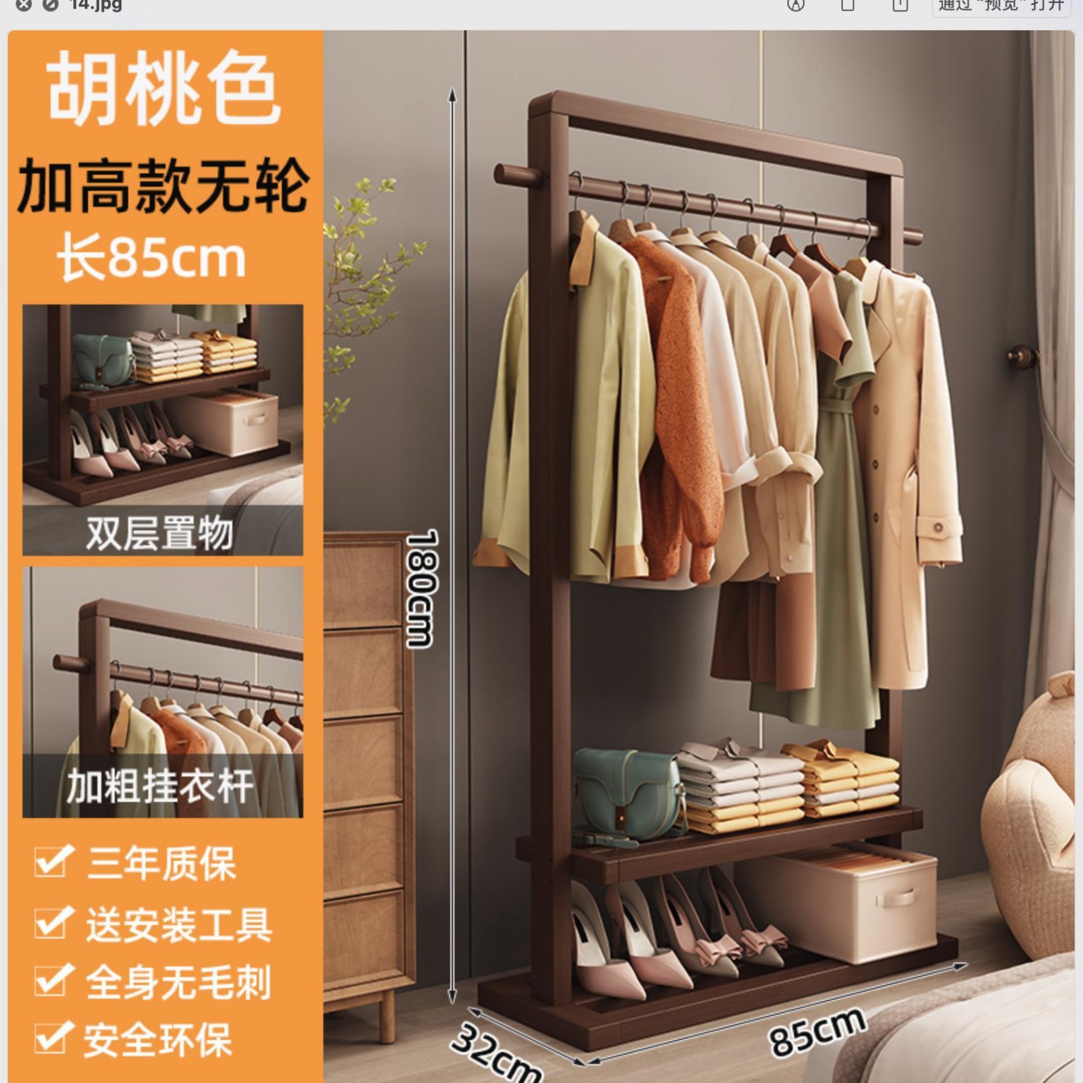 • 85 월넛 컬러 고가 옷걸이(바퀴 포함)