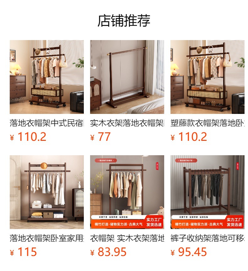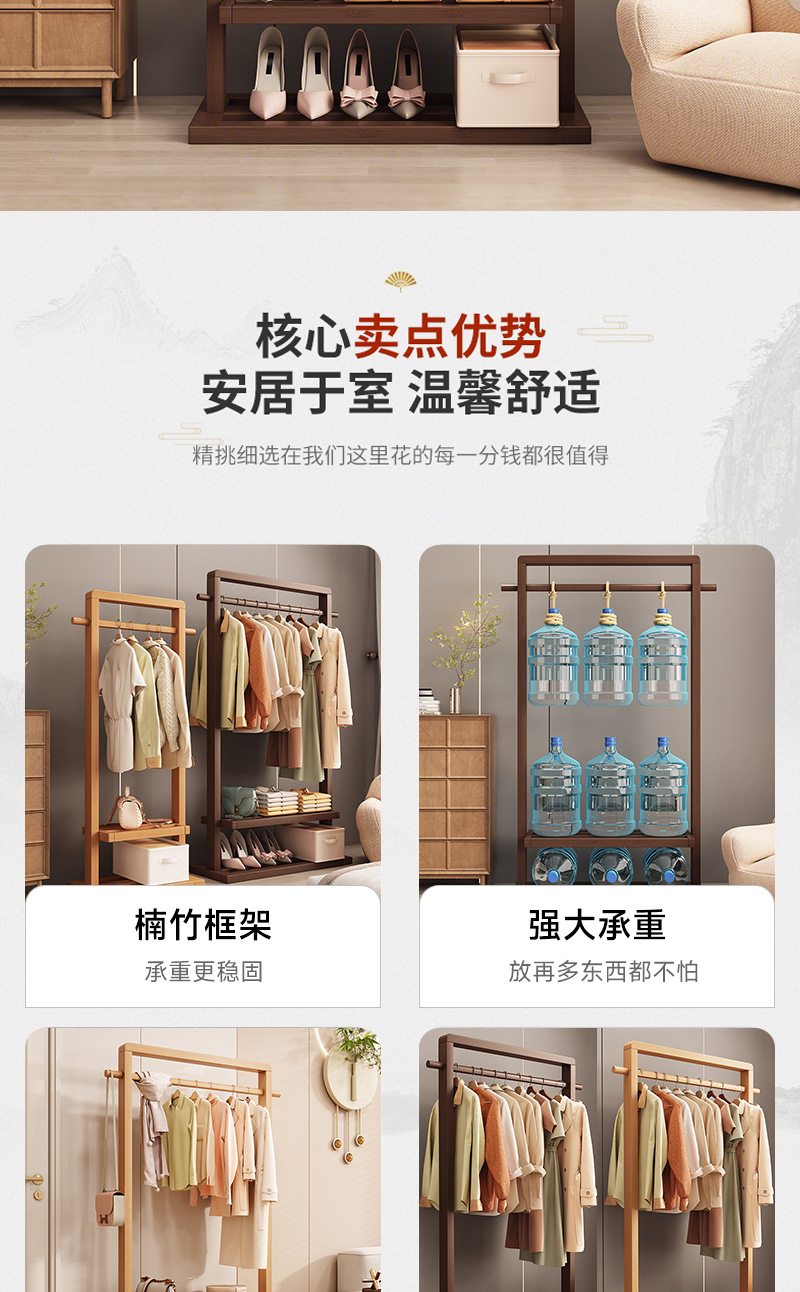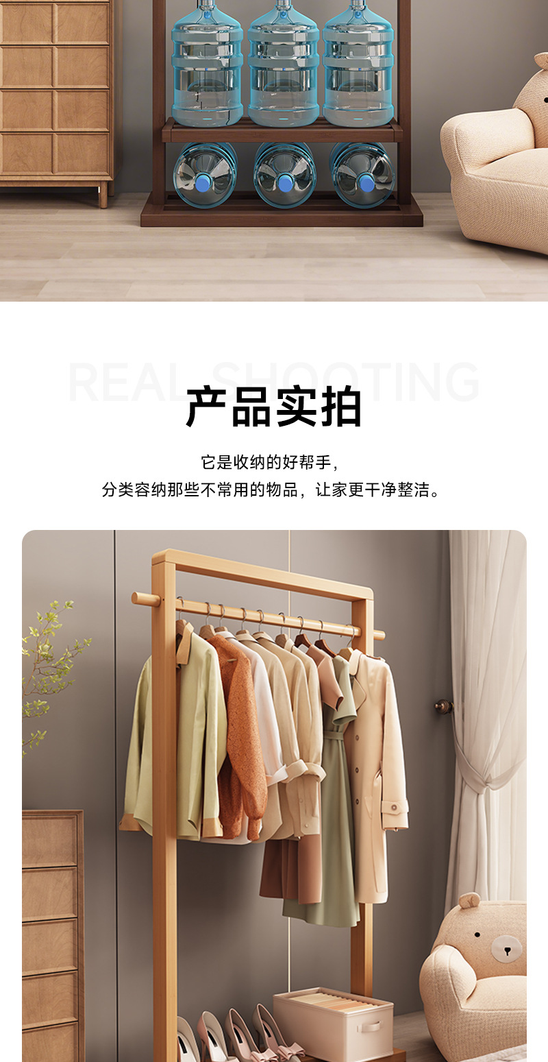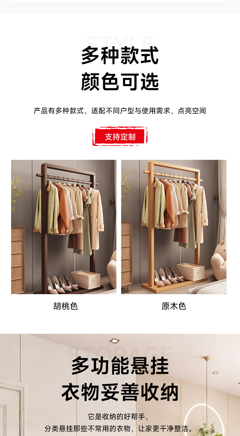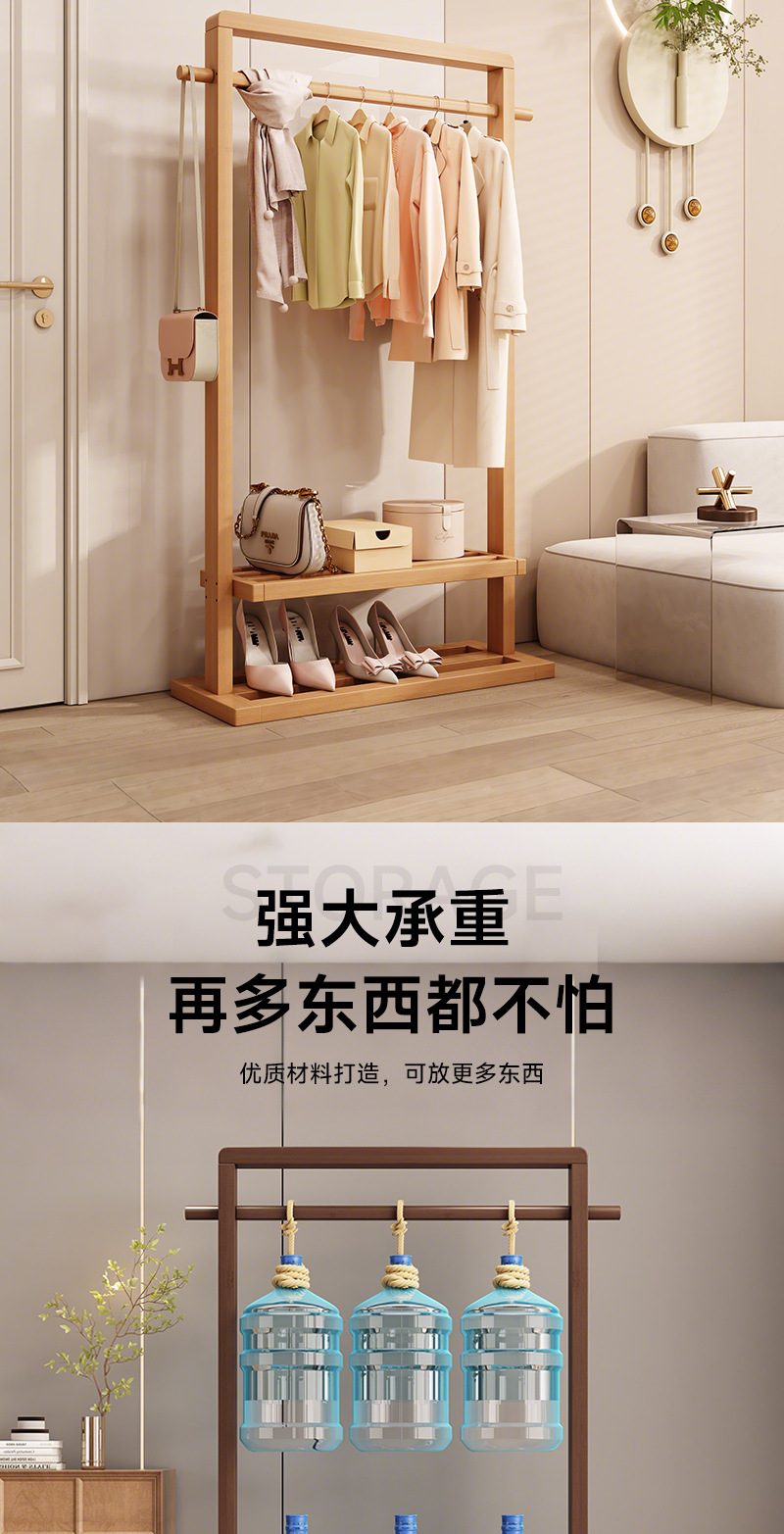 단단한 나무 옷걸이, 바닥 옷걸이, 침실 가정용 옷걸이, 간단한 수직 대나무 대학생 기숙사 가방 걸이스토어 가기