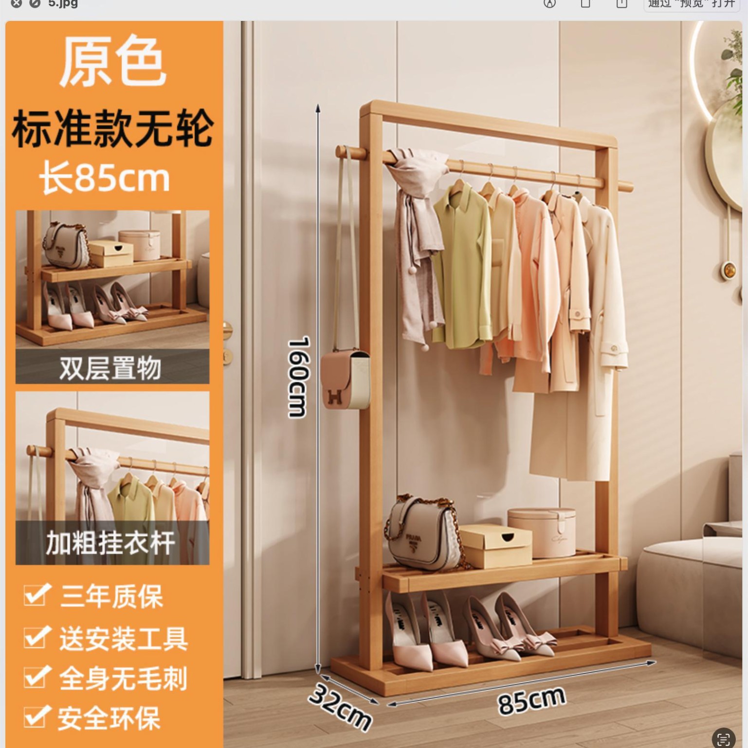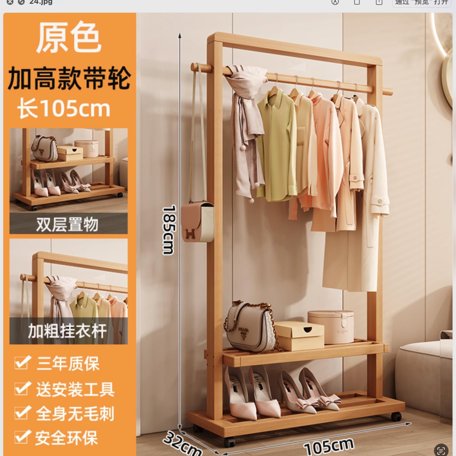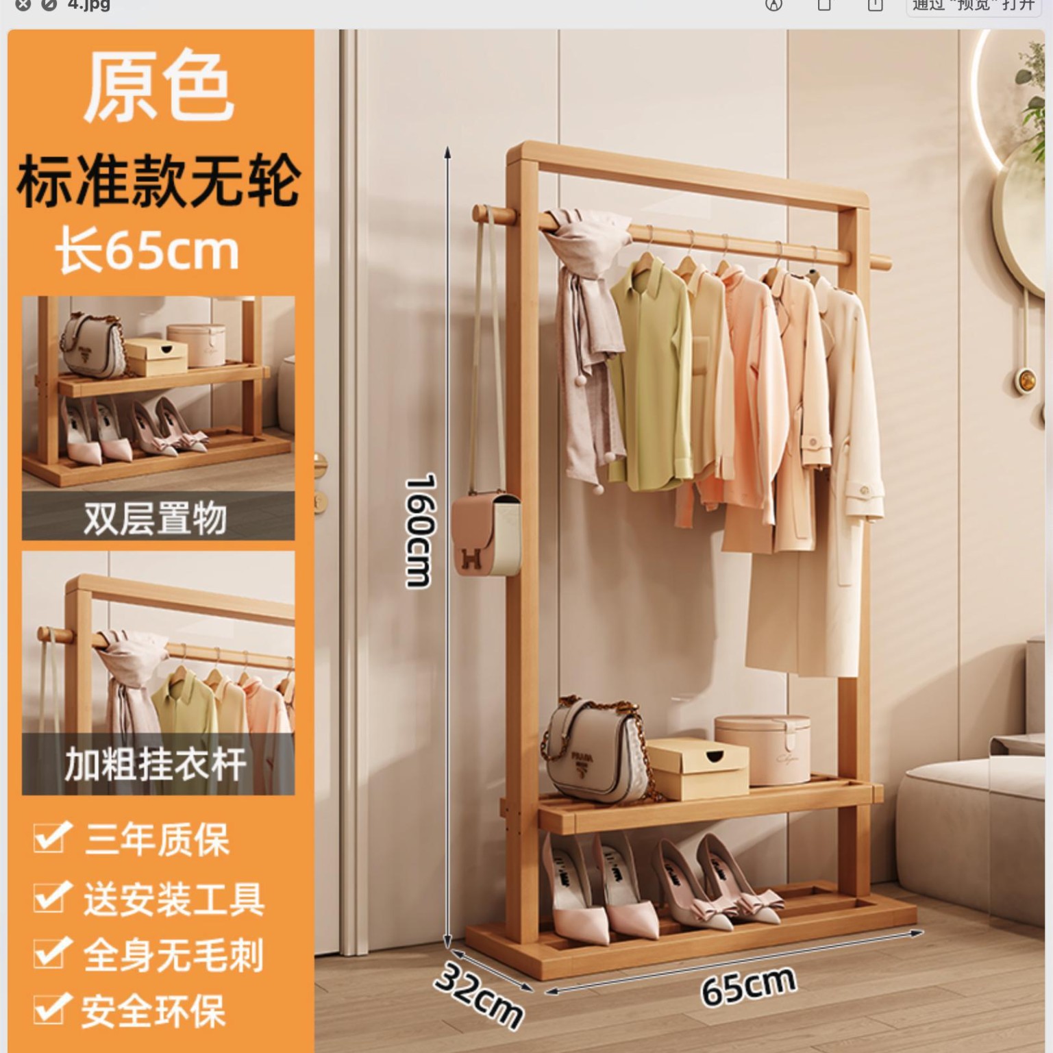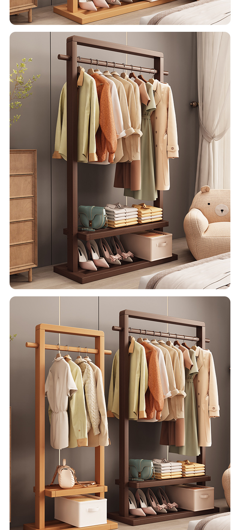 단단한 나무 옷걸이, 바닥 옷걸이, 침실 가정용 옷걸이, 간단한 수직 대나무 대학생 기숙사 가방 걸이스토어 가기
