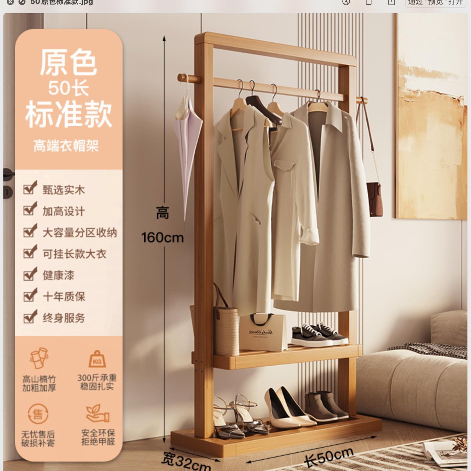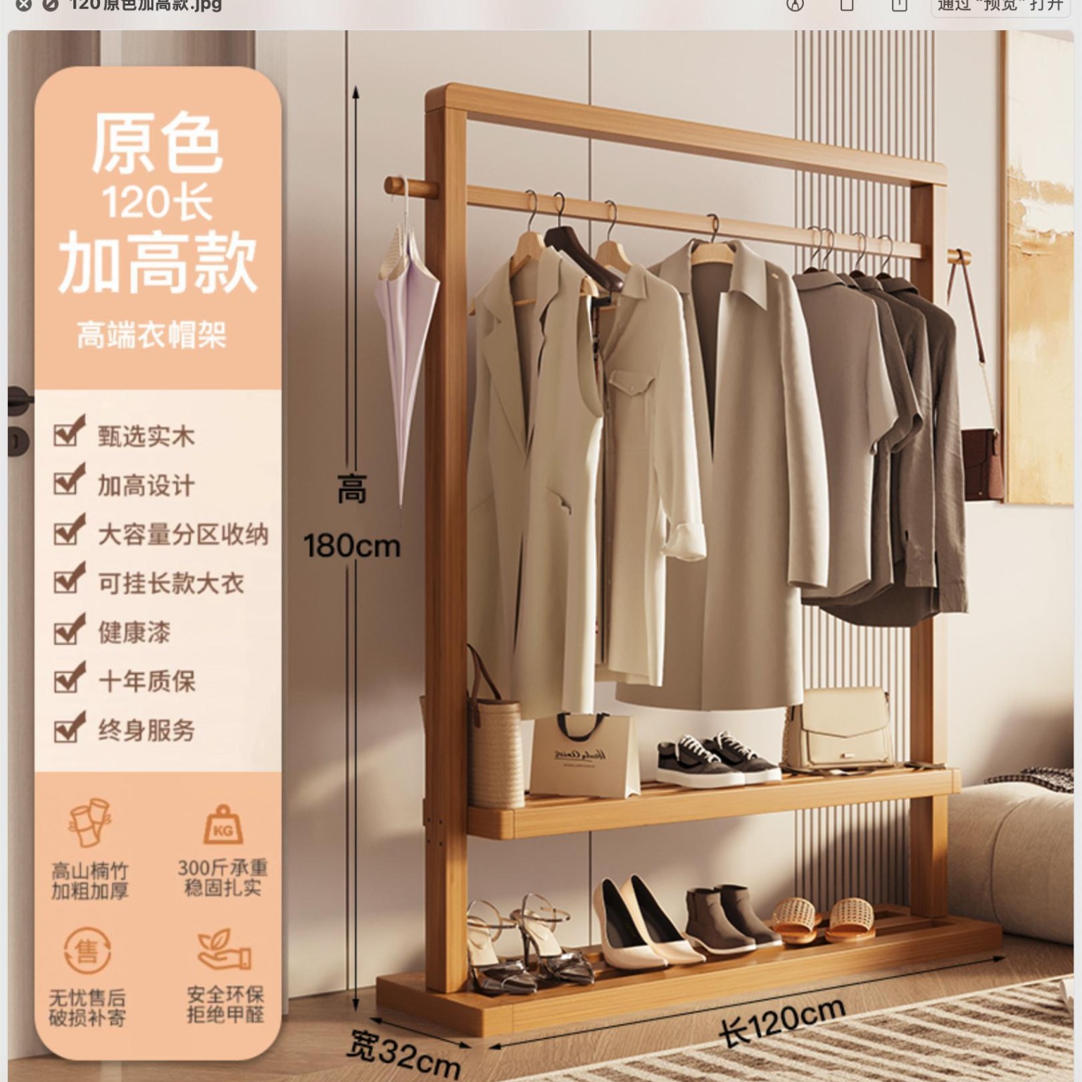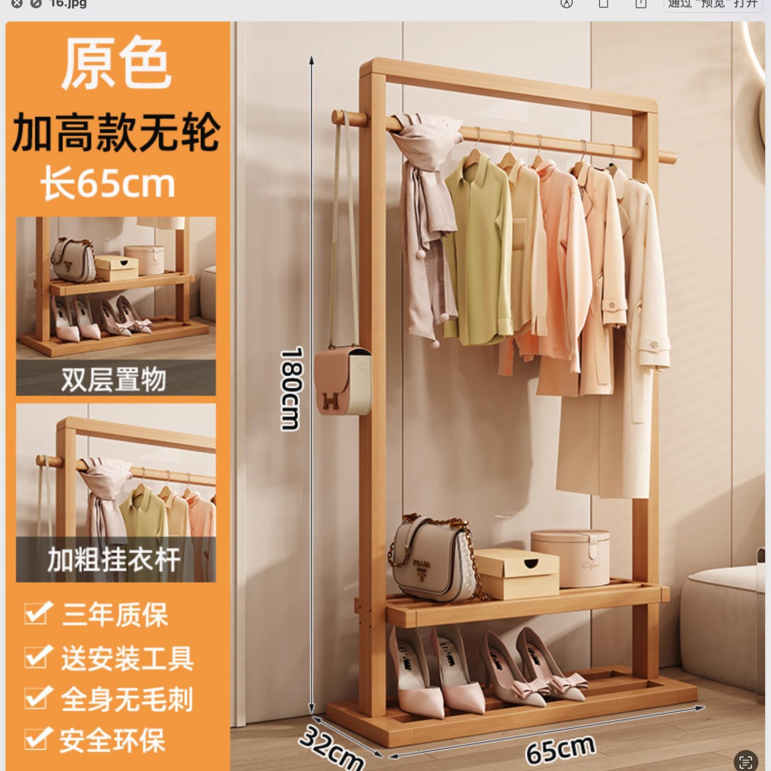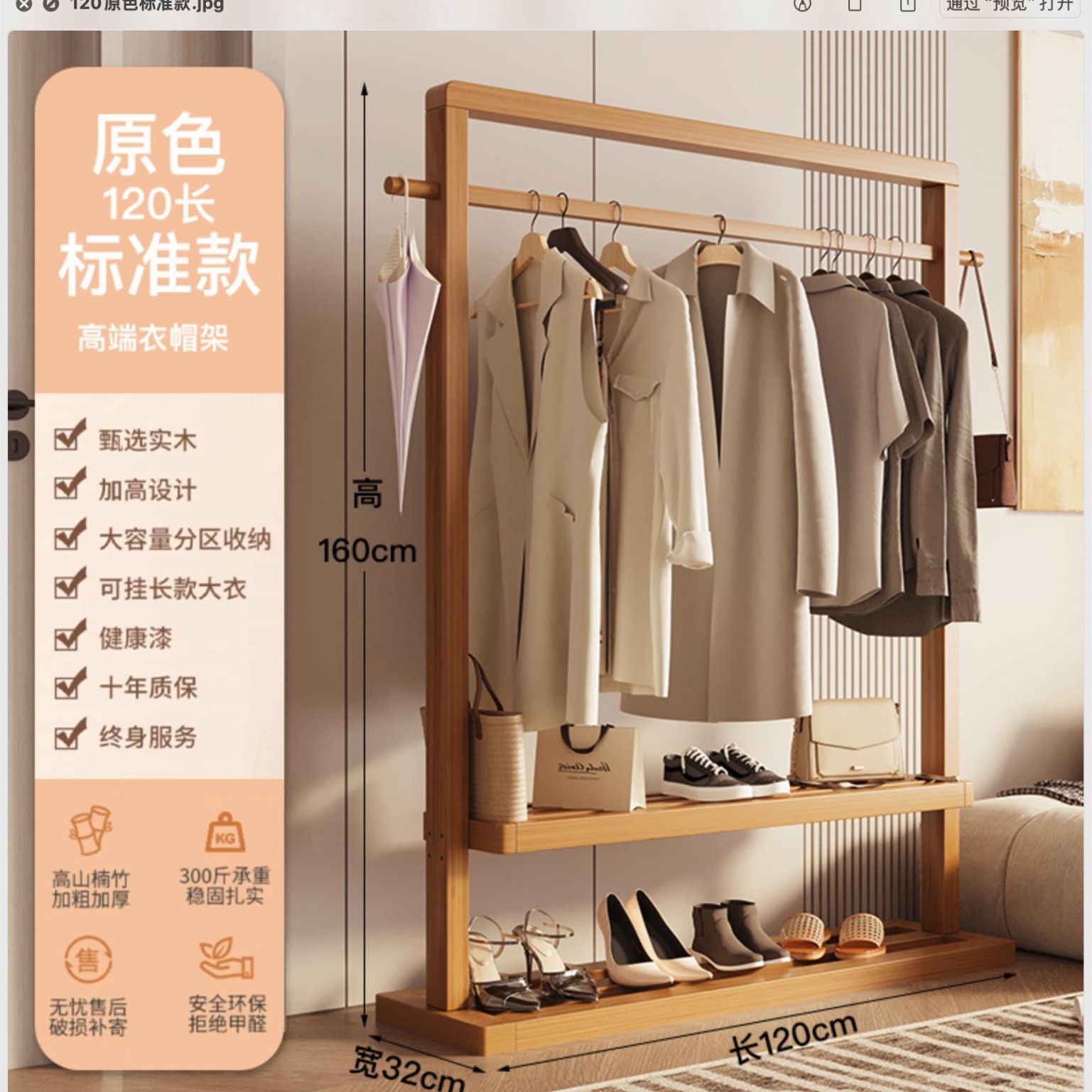 단단한 나무 옷걸이, 바닥 옷걸이, 침실 가정용 옷걸이, 간단한 수직 대나무 대학생 기숙사 가방 걸이스토어 가기