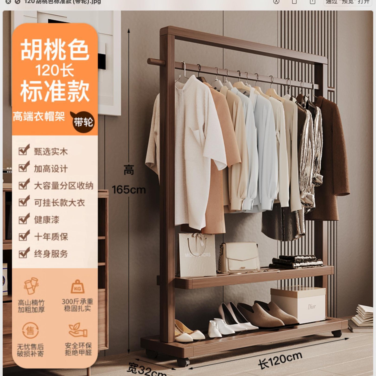 • 120호두색 높이 옷걸이(바퀴 포함)