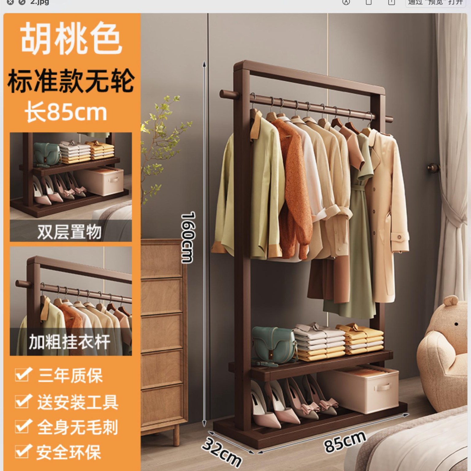 • 85 월넛색 옷걸이(바퀴 포함)