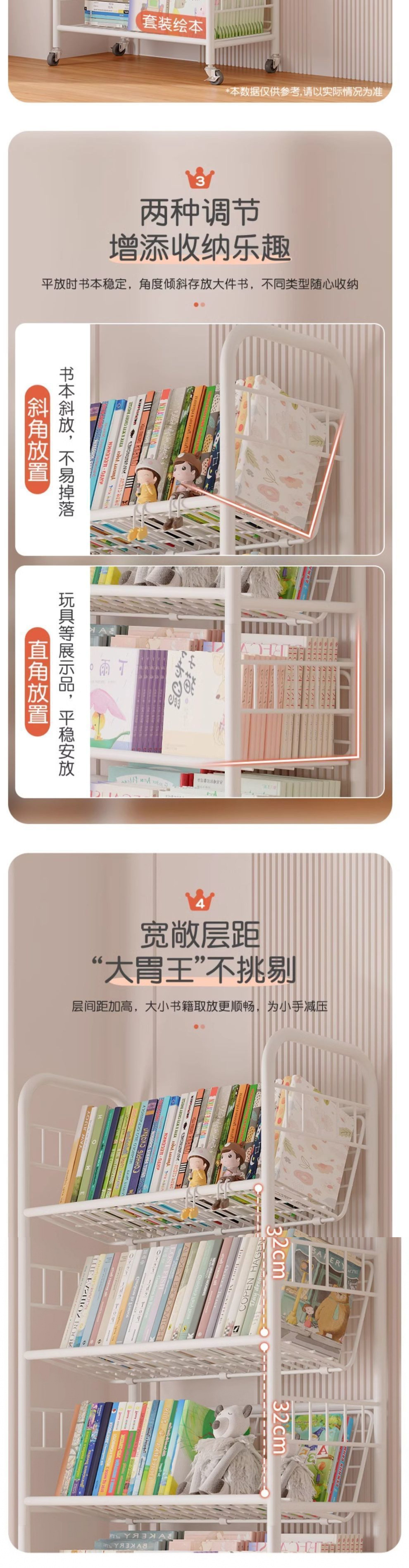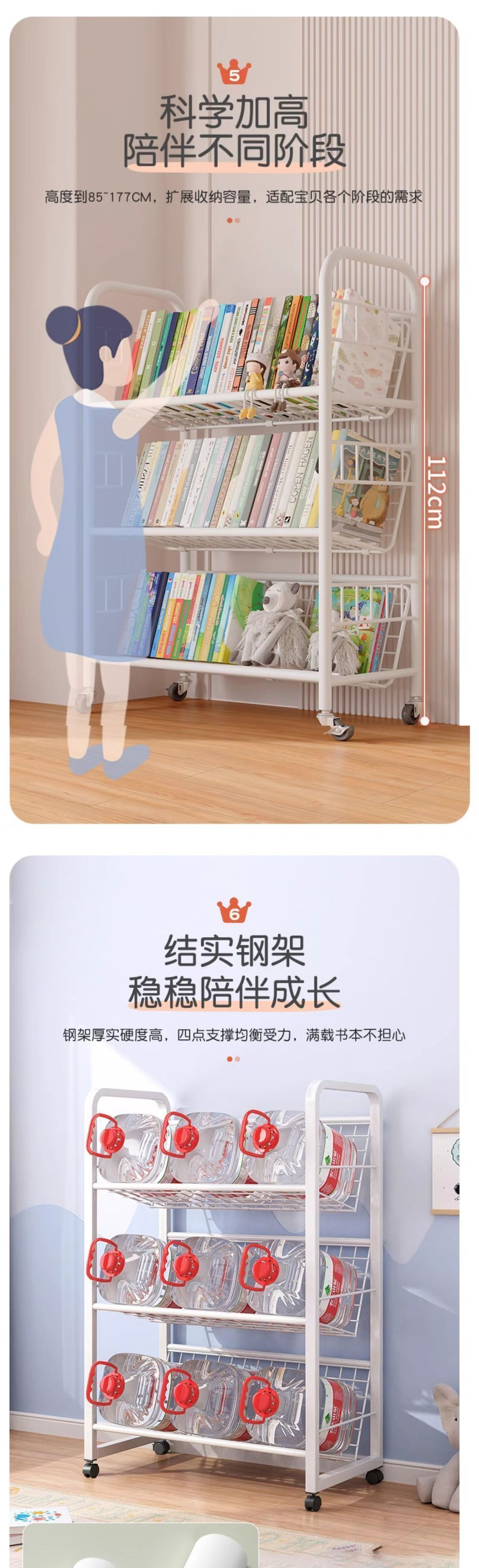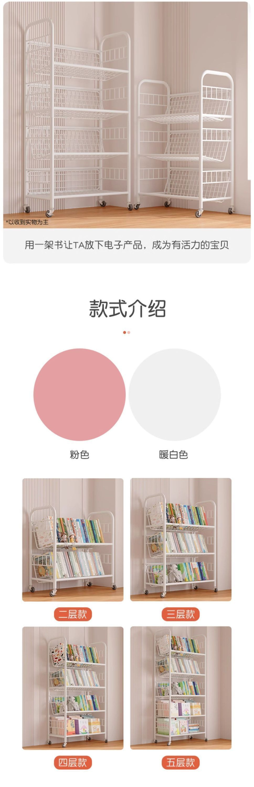 어린이 책장 철 그림책 보관함 가정 독서 공간 간단한 책장 바퀴가 달린 이동식 바닥 보관함