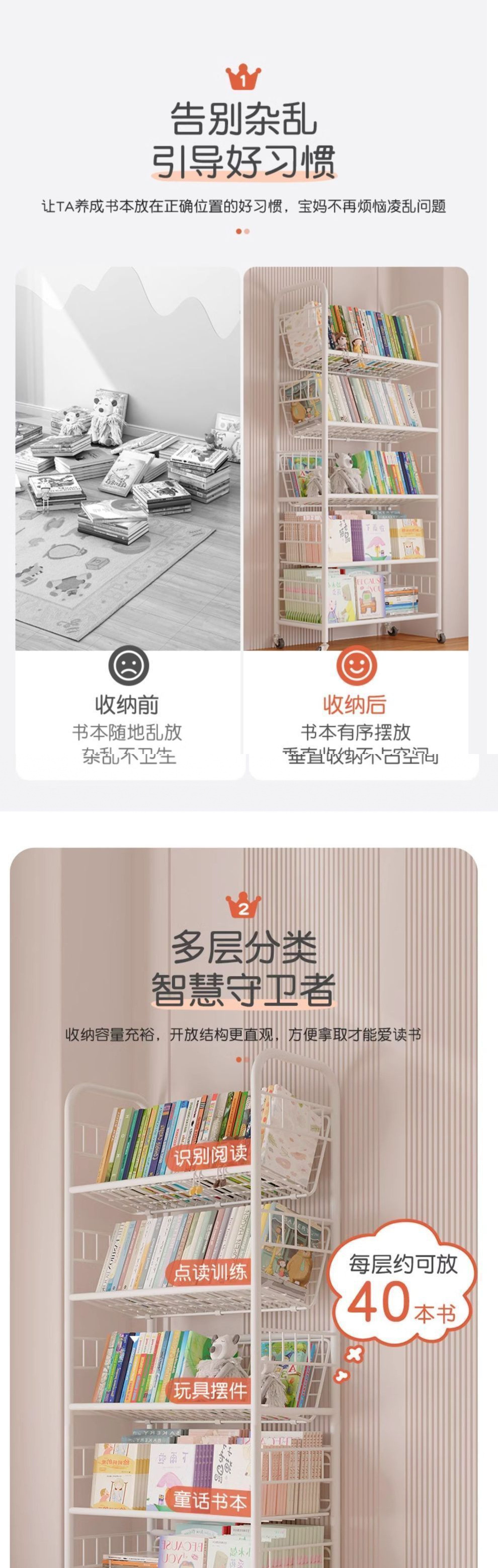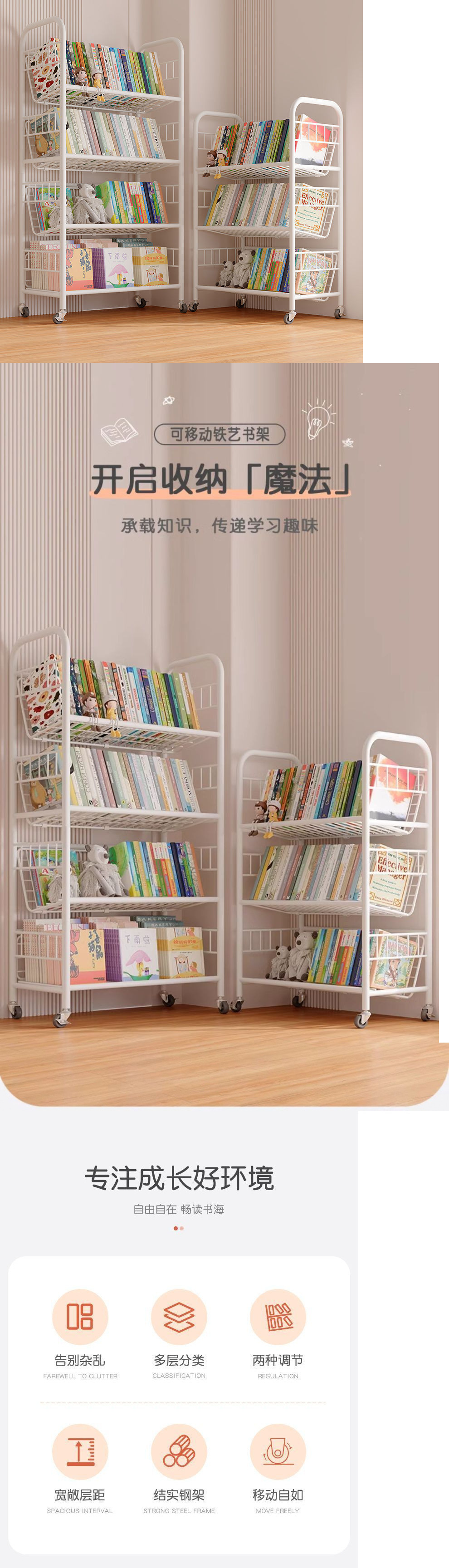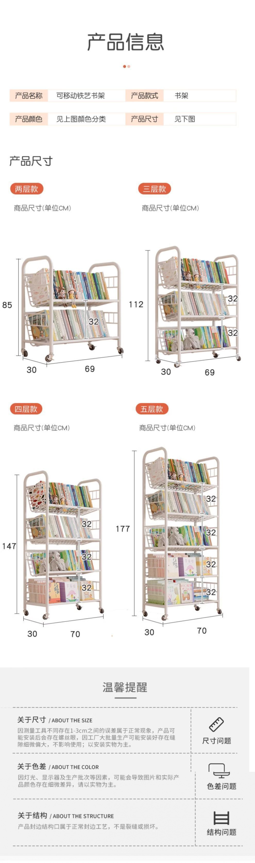 어린이 책장 철 그림책 보관함 가정 독서 공간 간단한 책장 바퀴가 달린 이동식 바닥 보관함