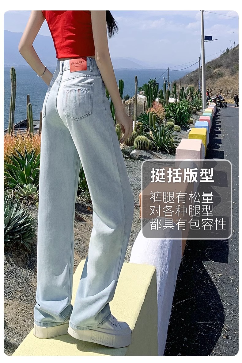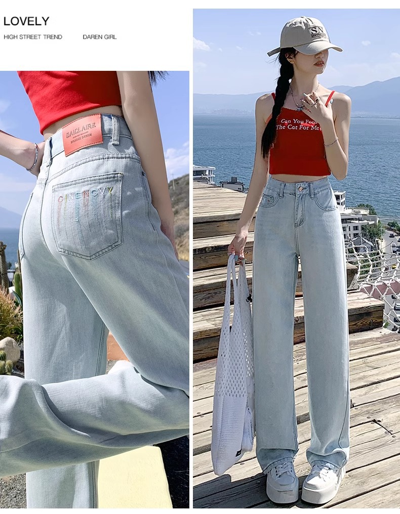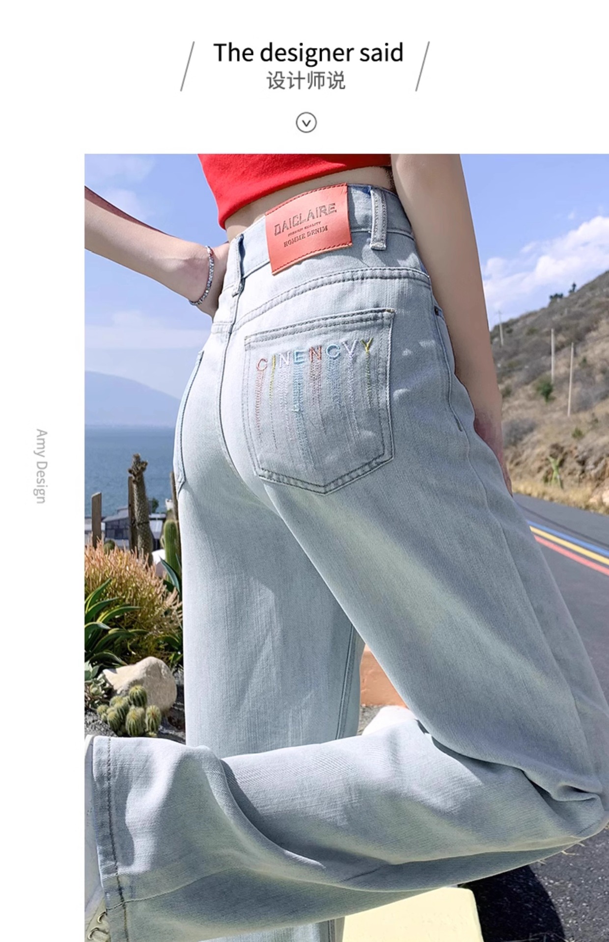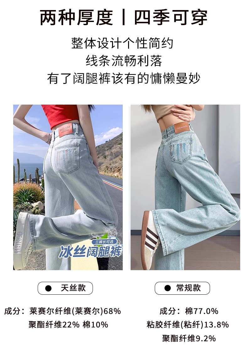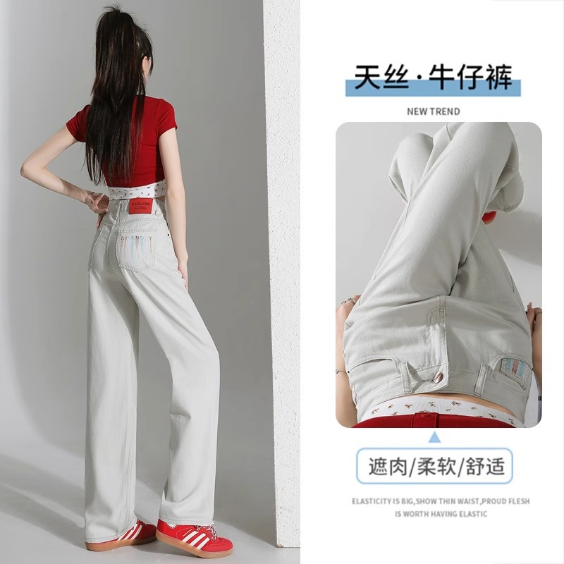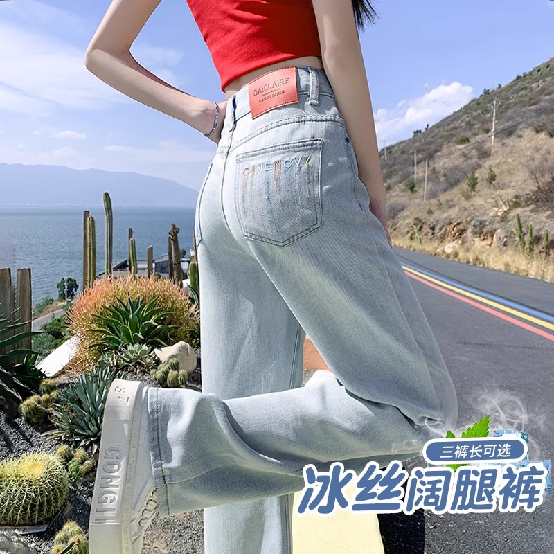 수 놓은 좁은 텐셀 청바지 여성 여름 얇은 2025 새로운 스타일 딥 느슨한 넓은 다리 바지 봄과 가을스토어 가기