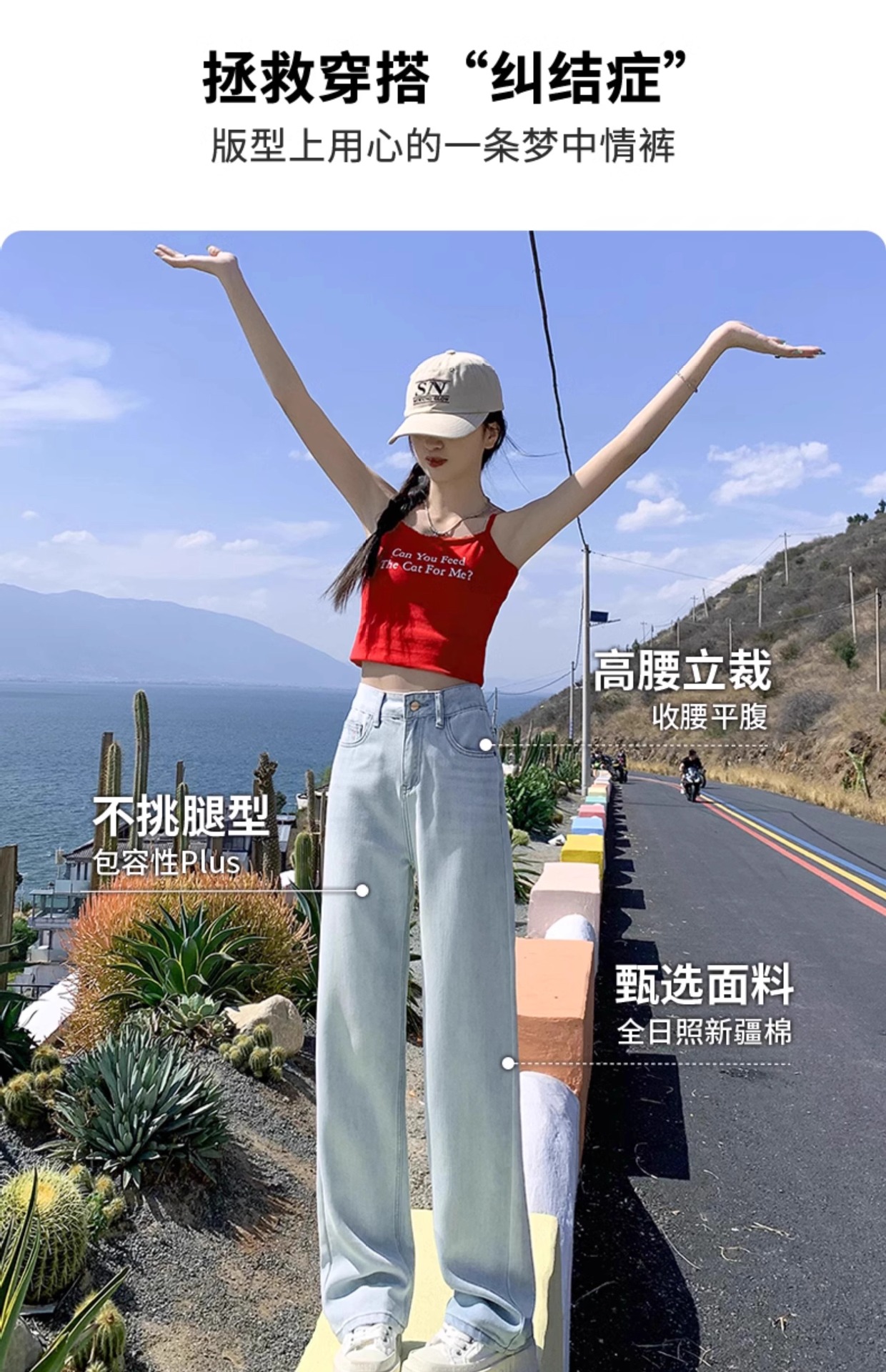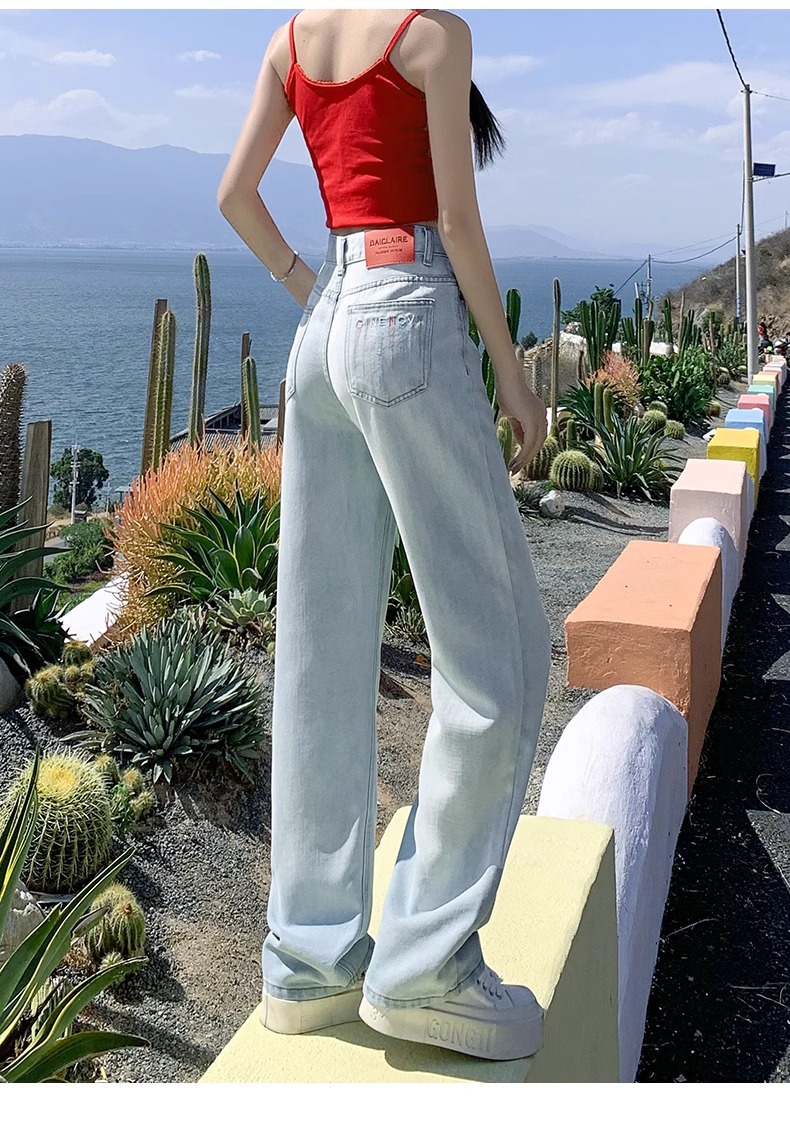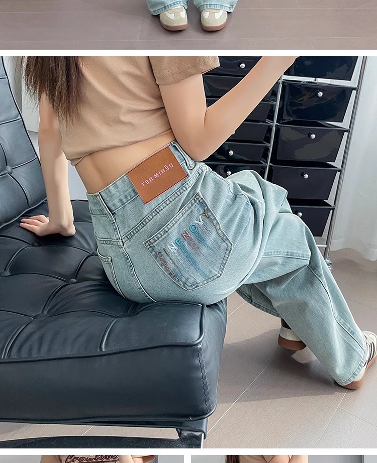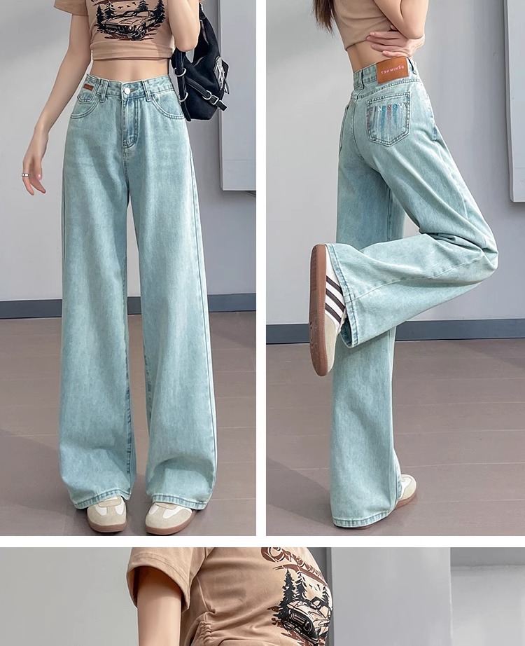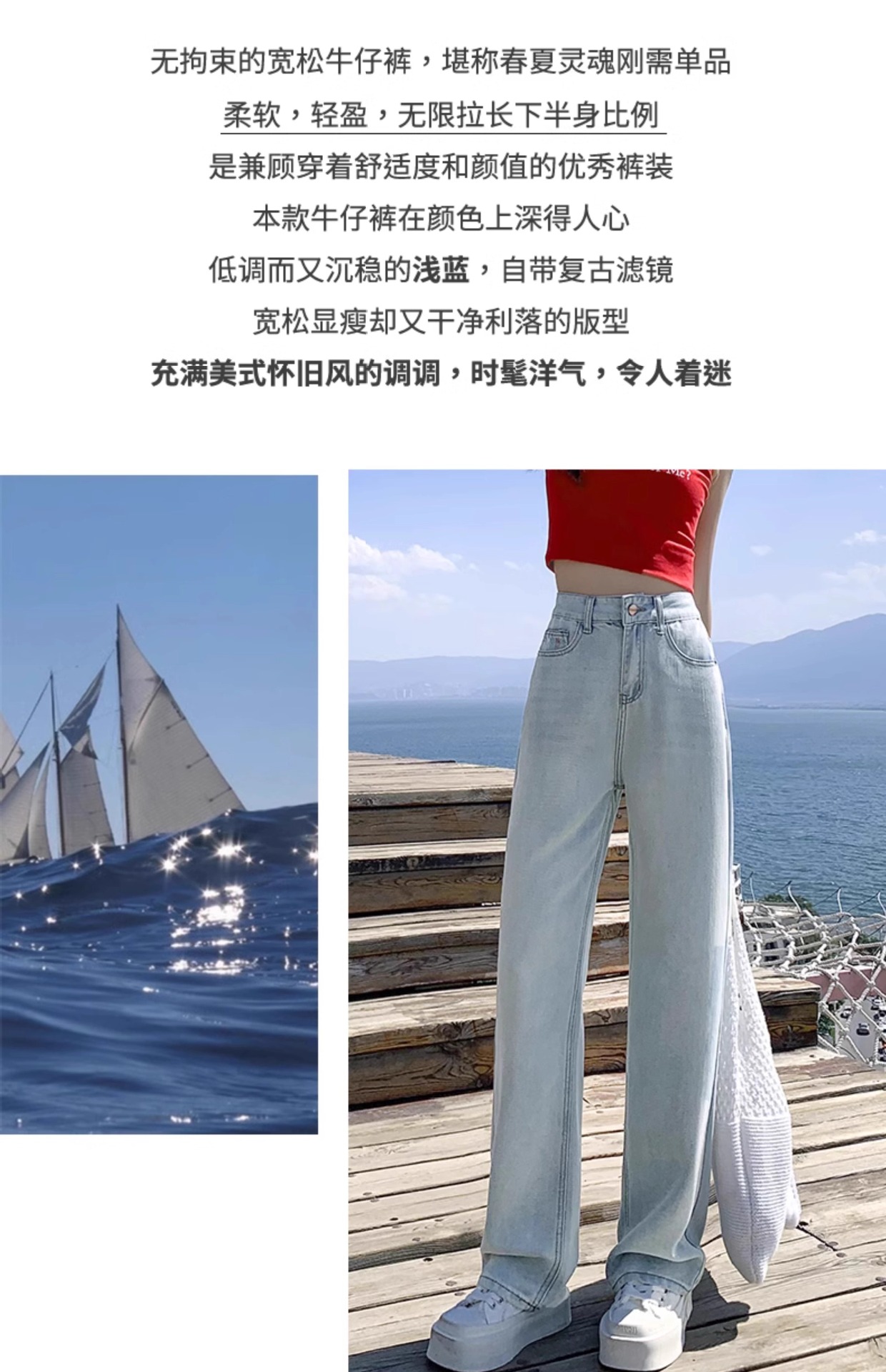 수 놓은 좁은 텐셀 청바지 여성 여름 얇은 2025 새로운 스타일 딥 느슨한 넓은 다리 바지 봄과 가을스토어 가기