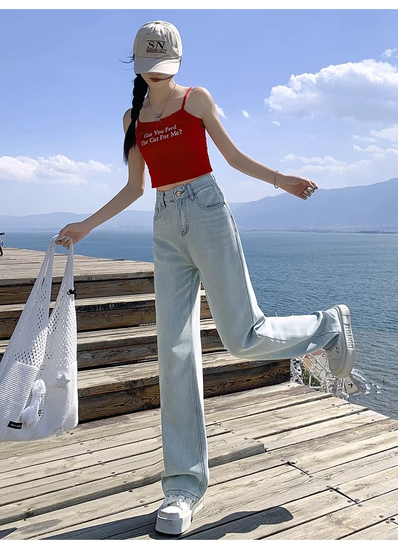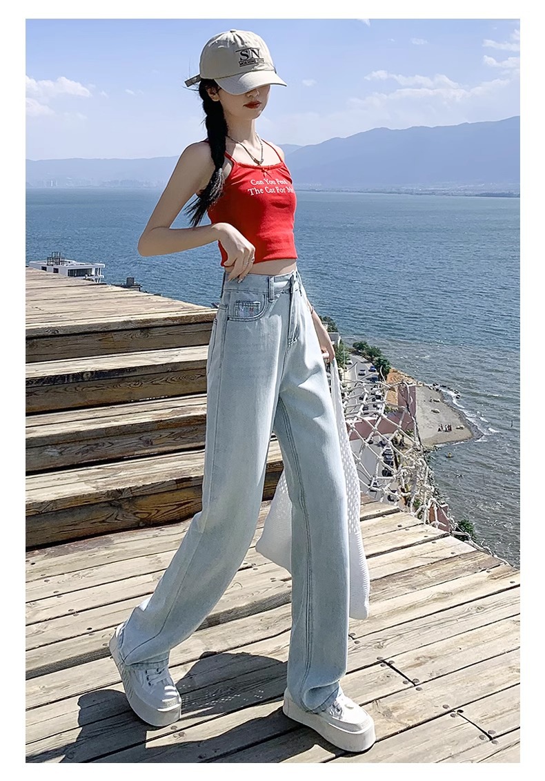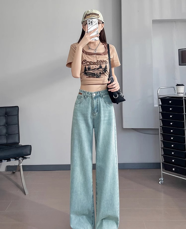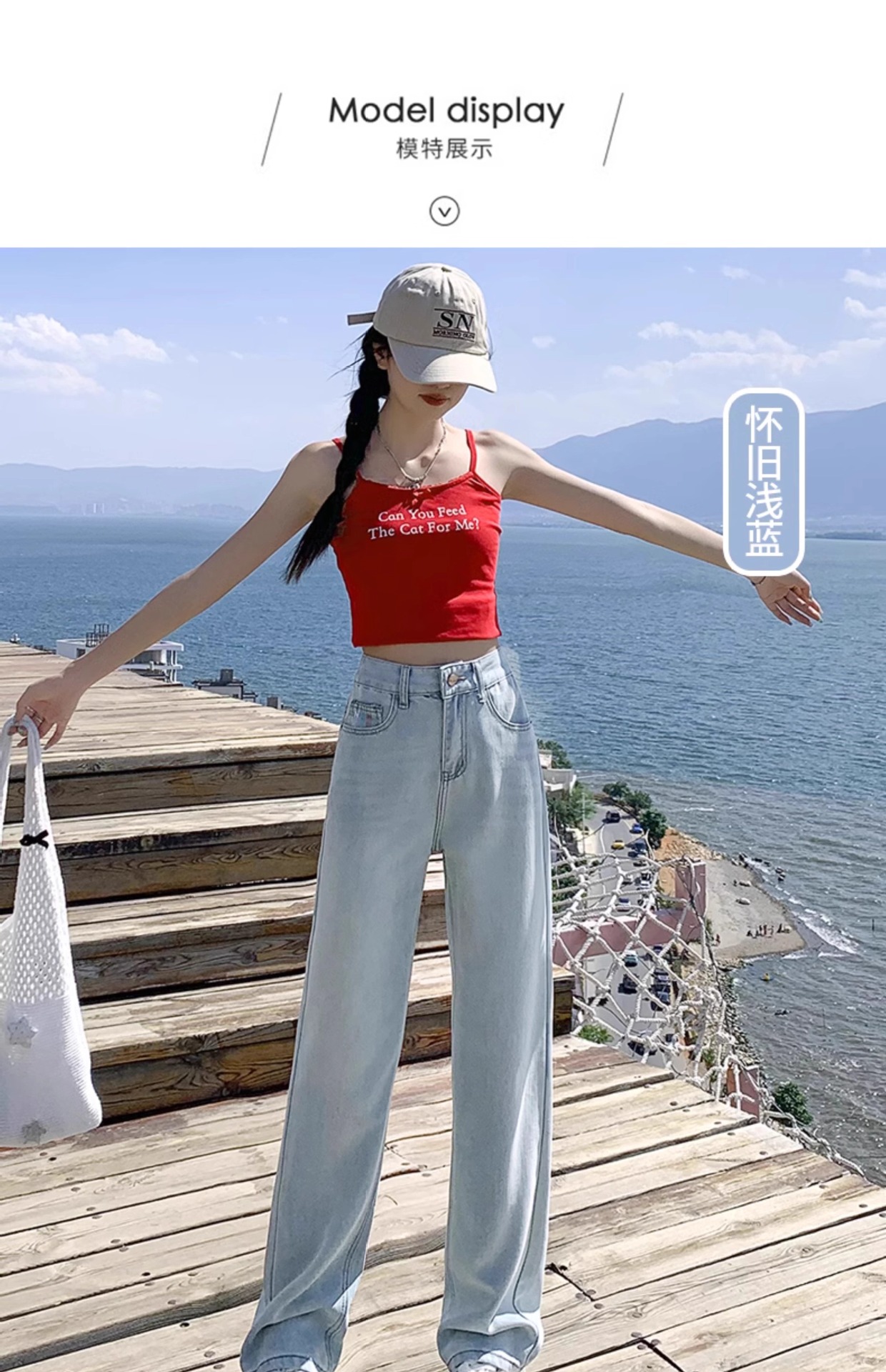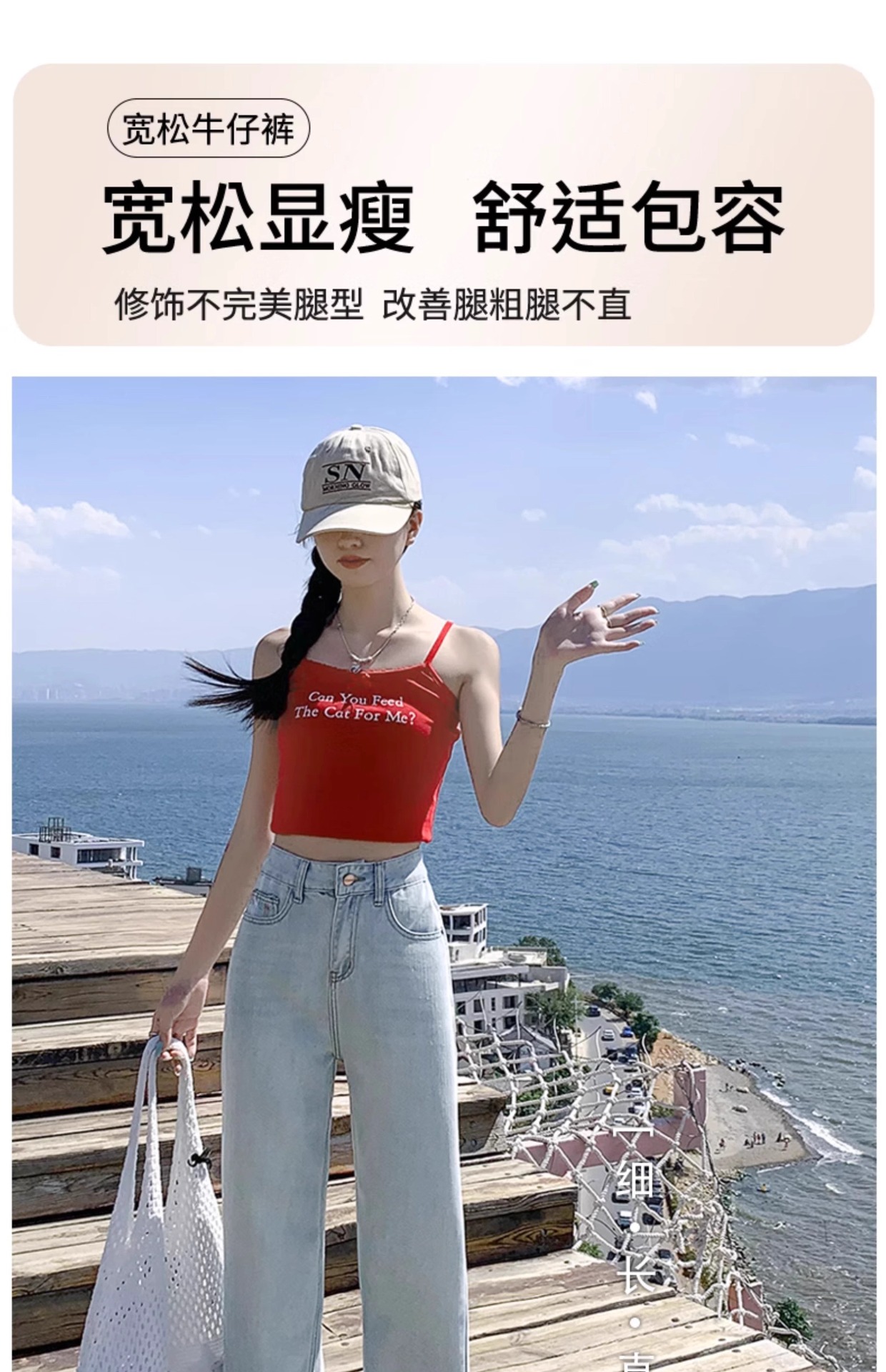 수 놓은 좁은 텐셀 청바지 여성 여름 얇은 2025 새로운 스타일 딥 느슨한 넓은 다리 바지 봄과 가을스토어 가기
