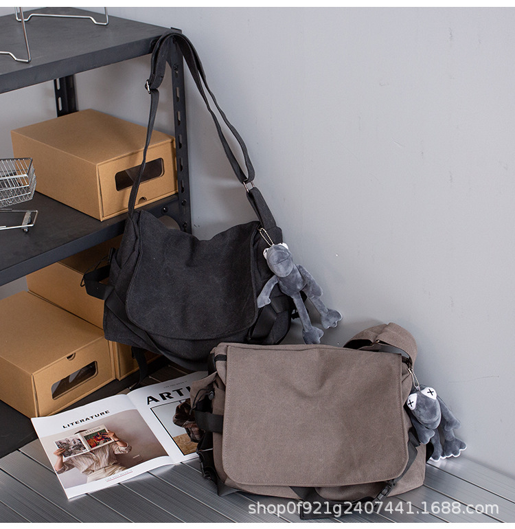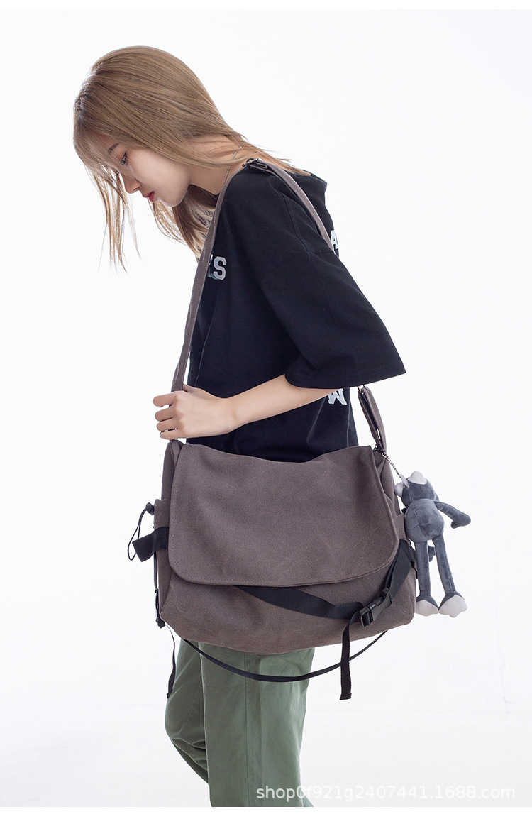 한국 스타일 게으른 돛 헝겊 가방 일본식 대용량 크로스 바디 가방 여성 레트로 학생 사첼 간단한 단색 어깨 가방스토어 가기